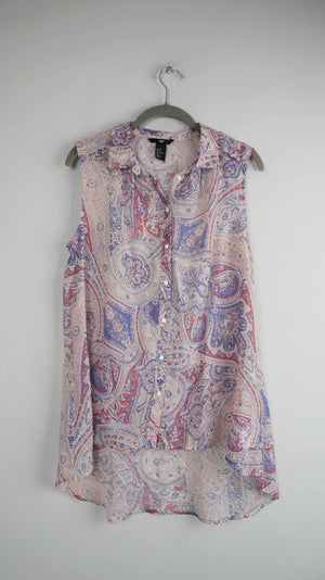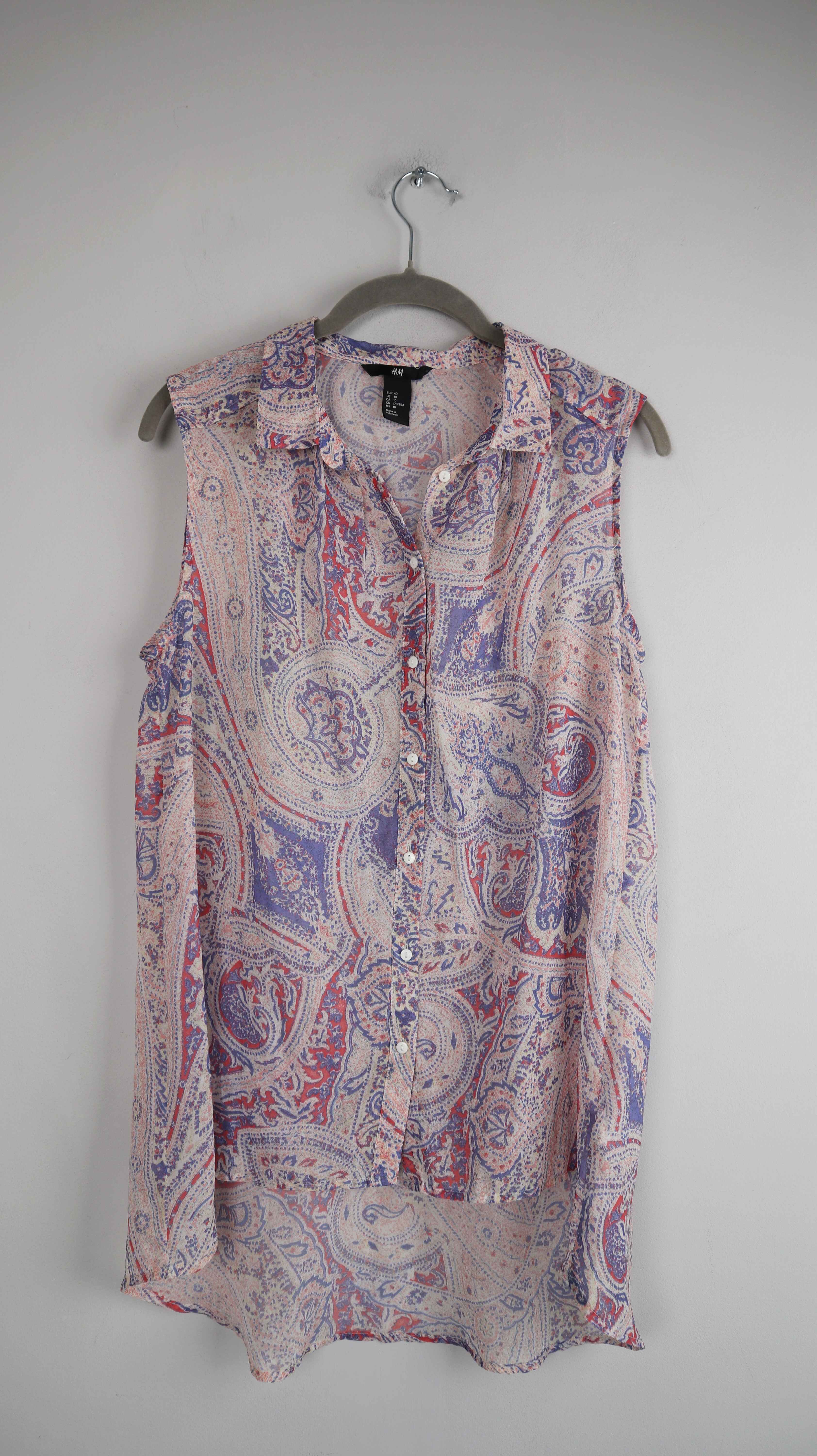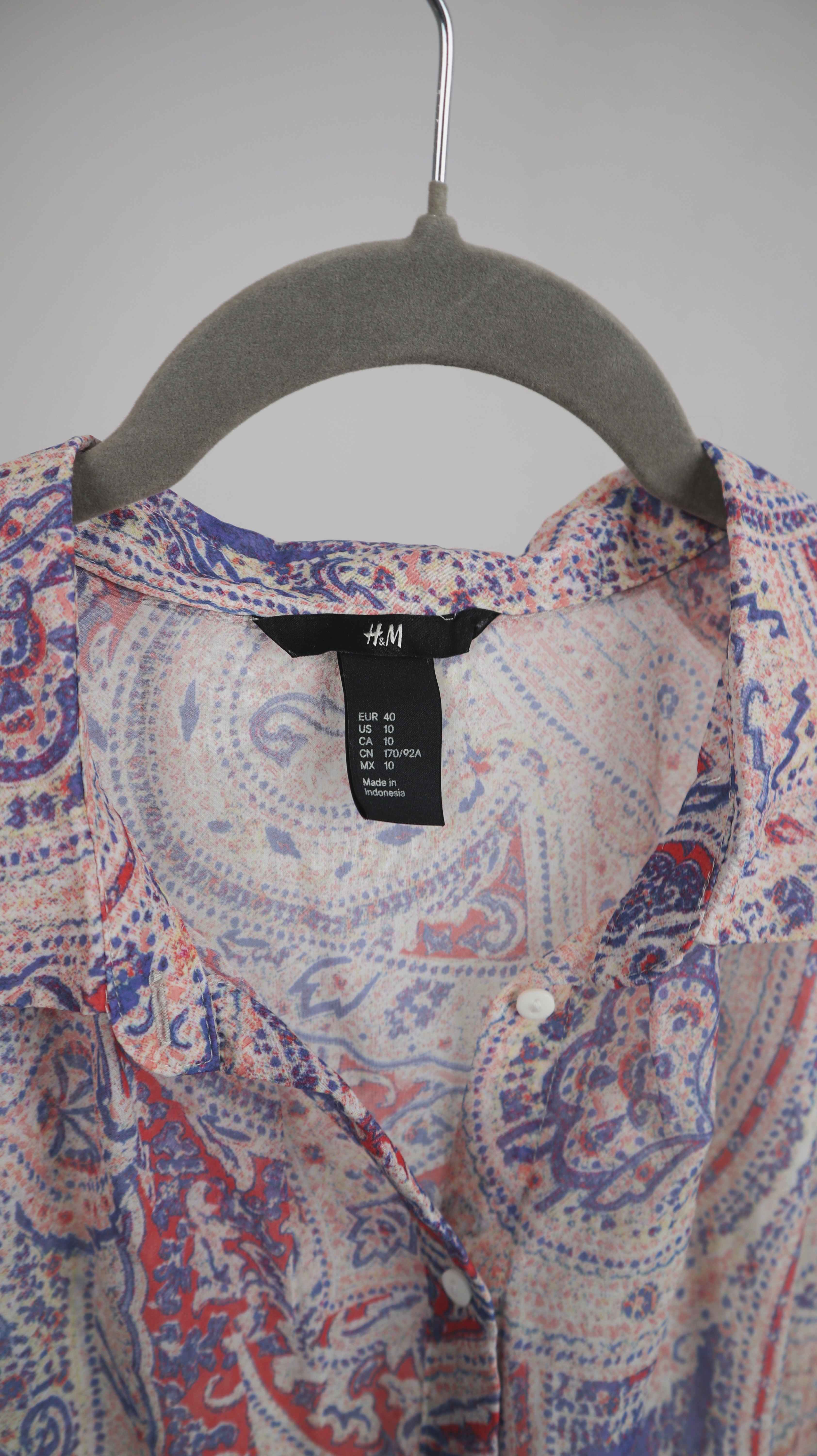 H&M Bluse Paisley 40 L bunt blau rot transparent Shirt Oberteil