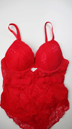 Roter push up Body mit Spitze von H&M. Er passt einer 40 L und bei dem Körbchen einem C-Cup. Plus Versand