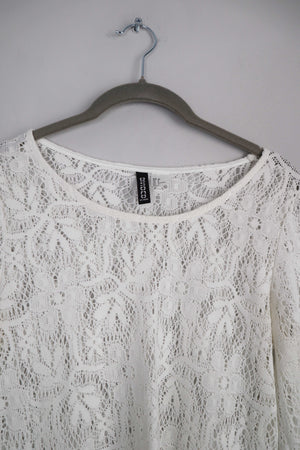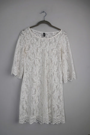 H&M Divided Kleid Weiß Spitze 38 M basic Midi Midikleid