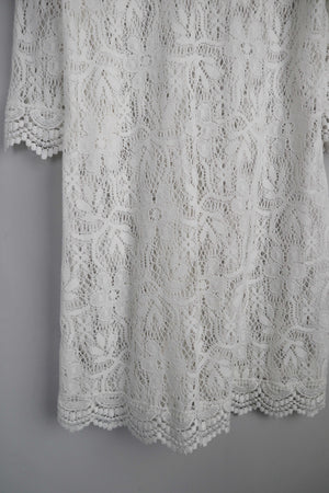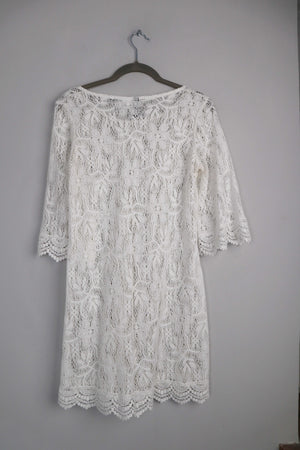 Weißes Midikleid von Divided in 38 M aus Spitze. 42 cm Achselweite und 74 cm Länge. Plus Versand