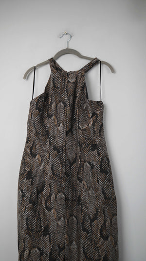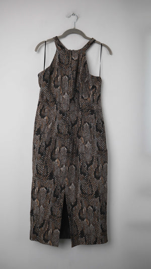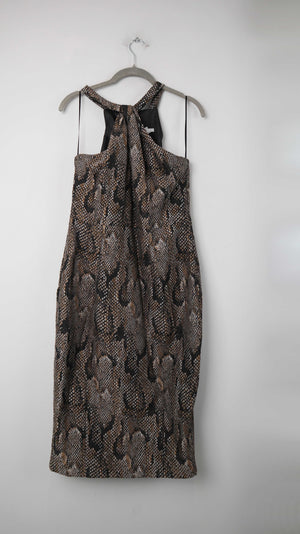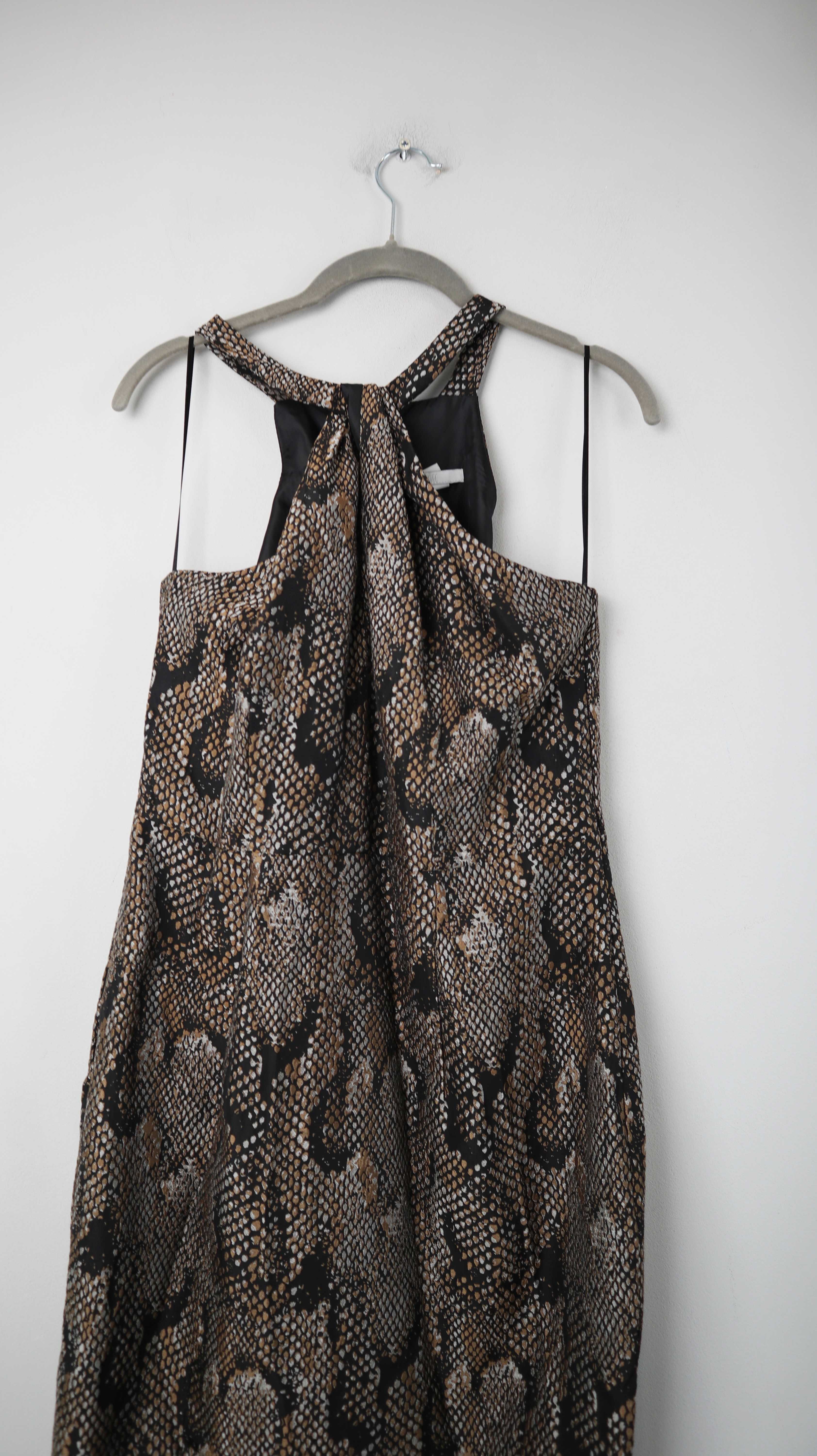 H&M Kleid Midi Midikleid Schlange schwarz 40 L Animalprint Neckholder