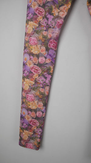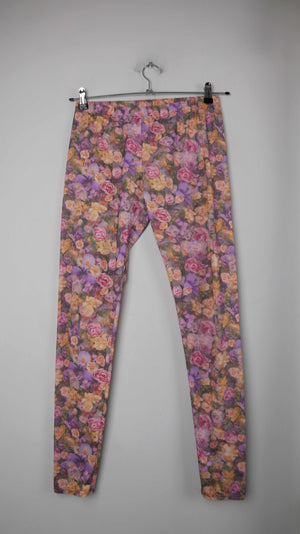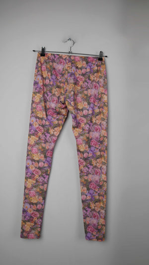H&M Leggings 38 M bunt Blumen lila Orange geblümt