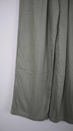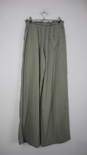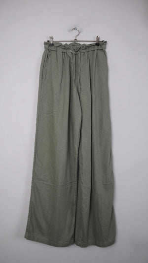 H&M Leinenhose Hose Leinen 36 S flared Sommerhose Grün Khaki