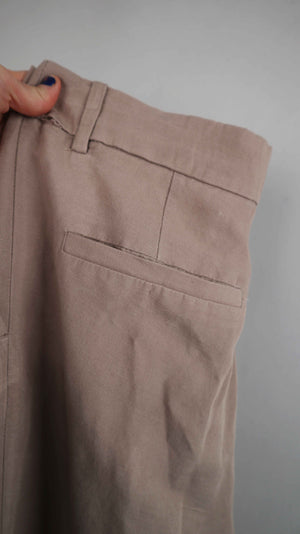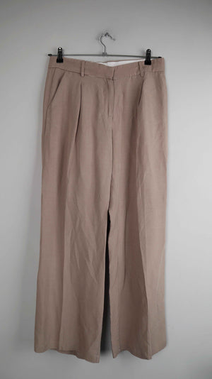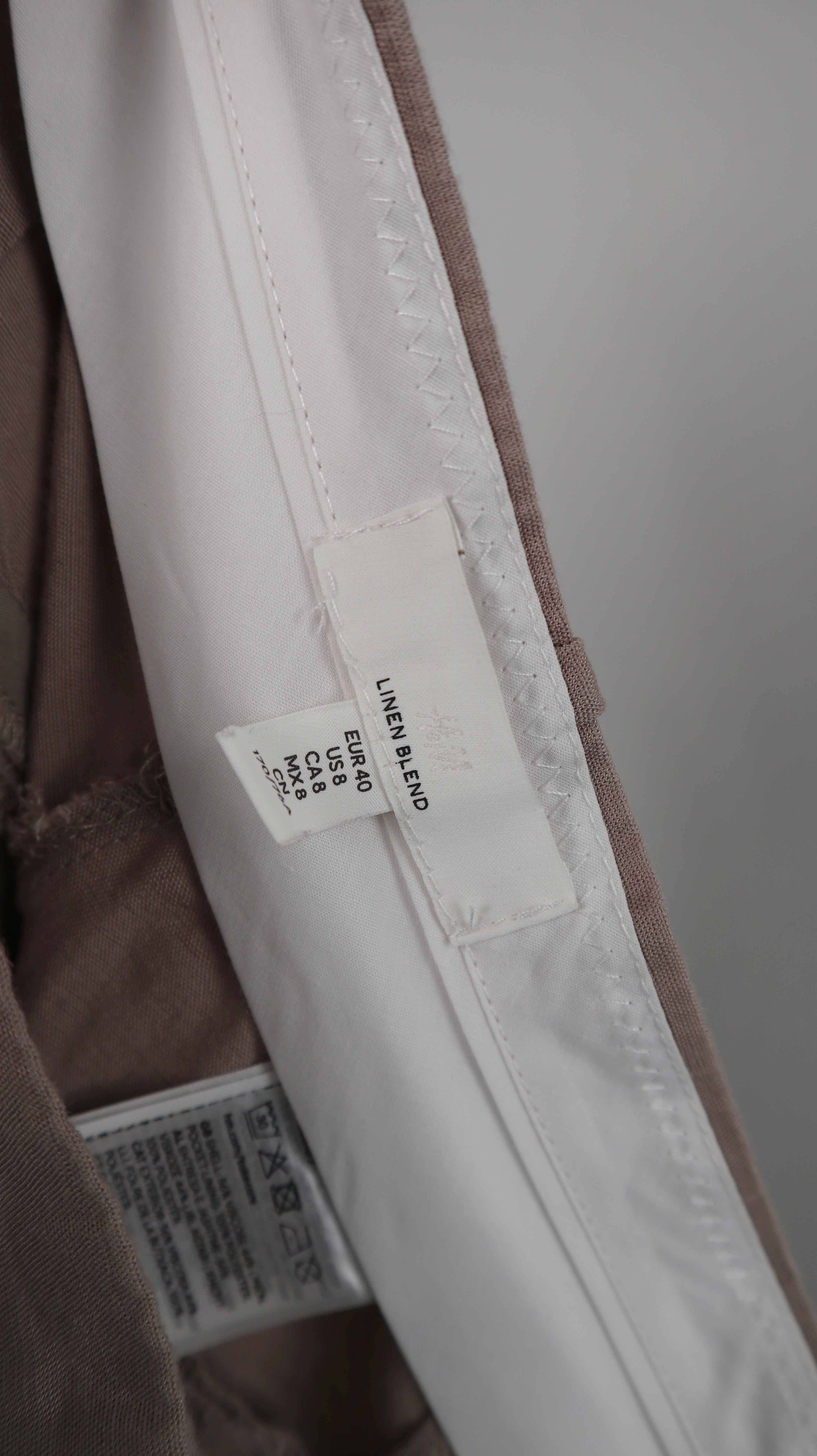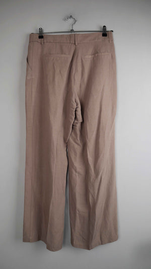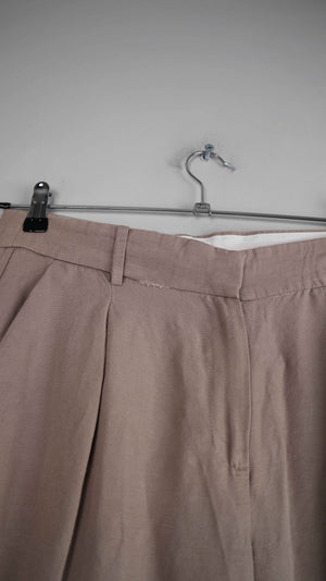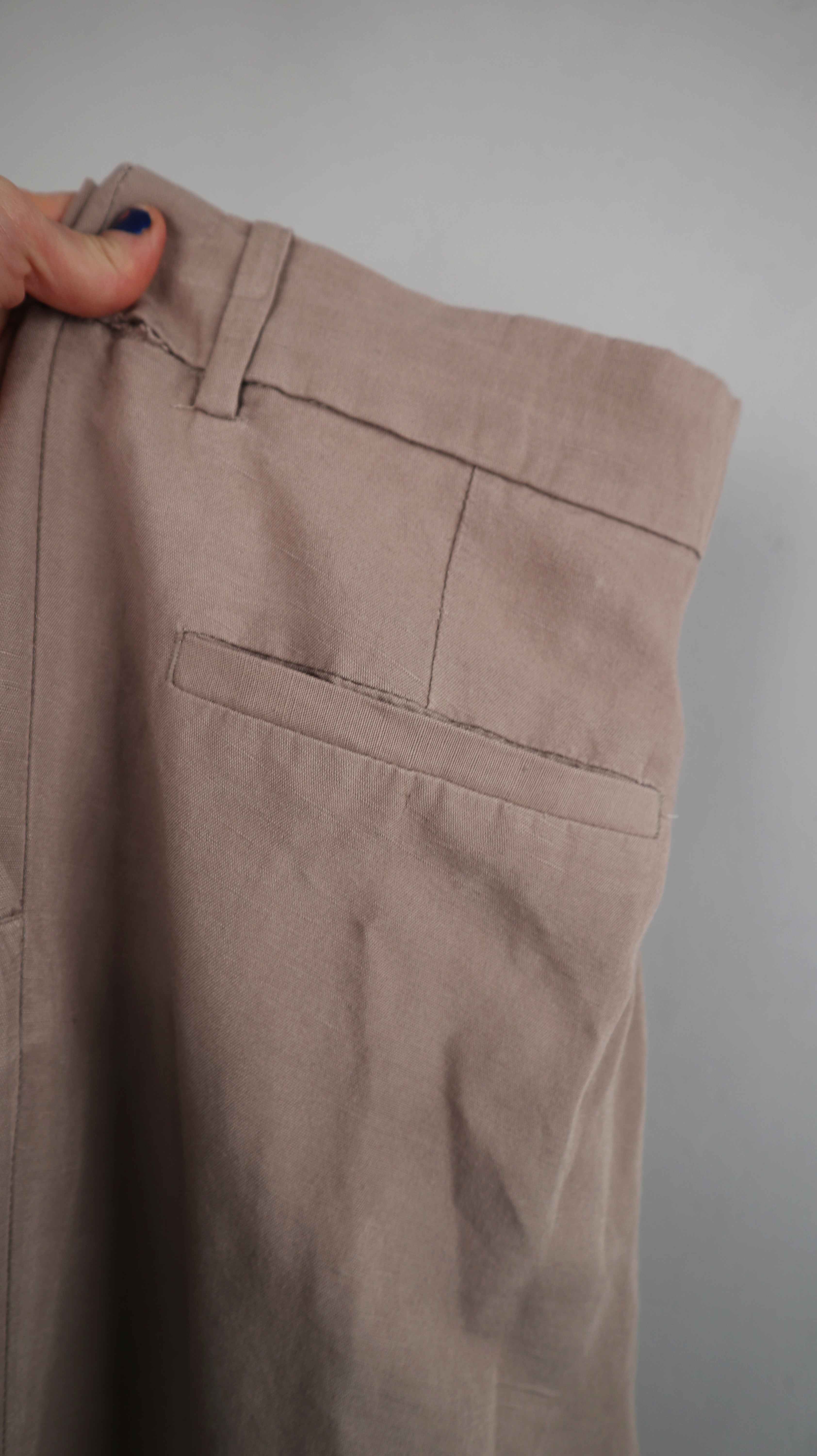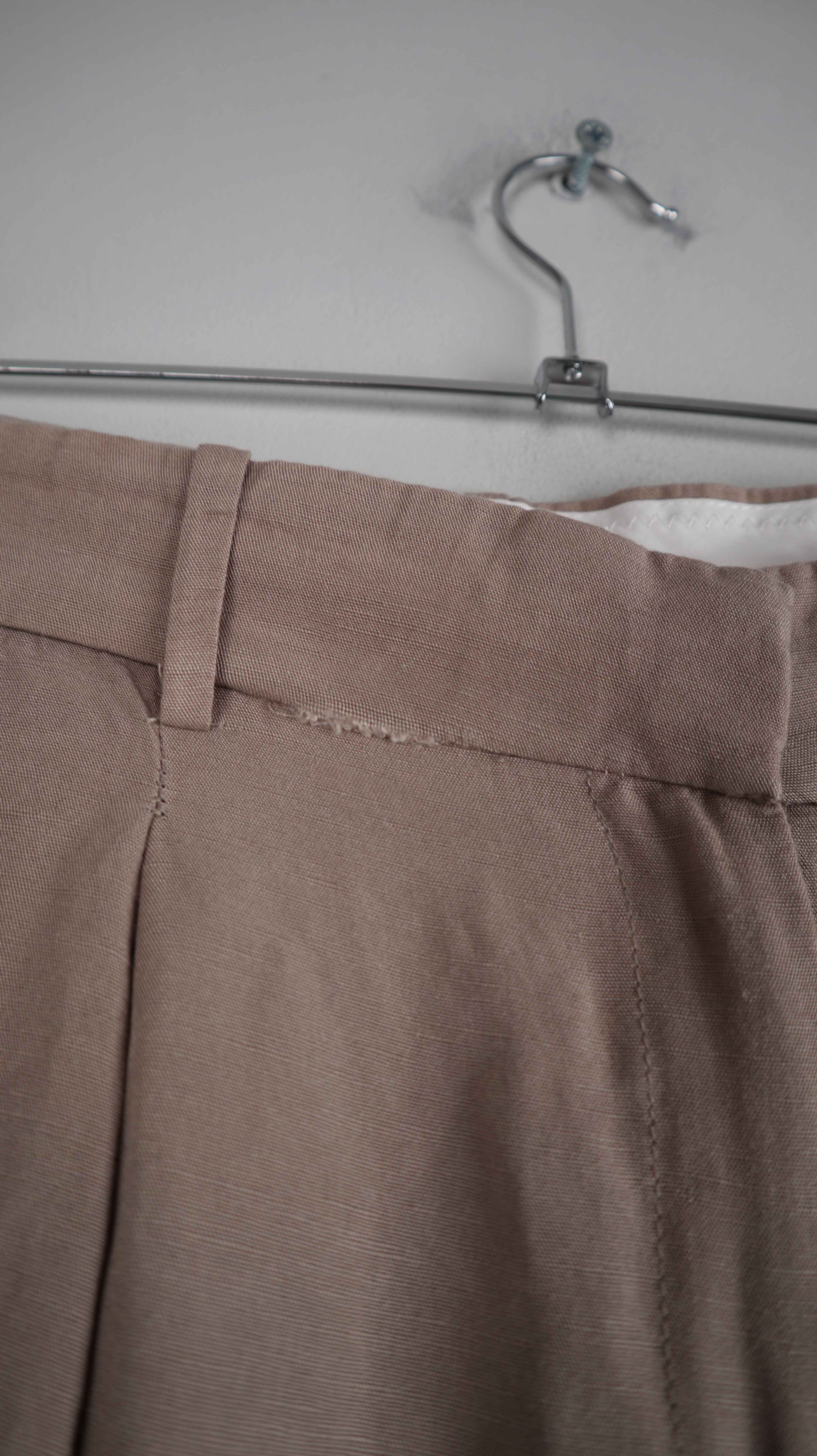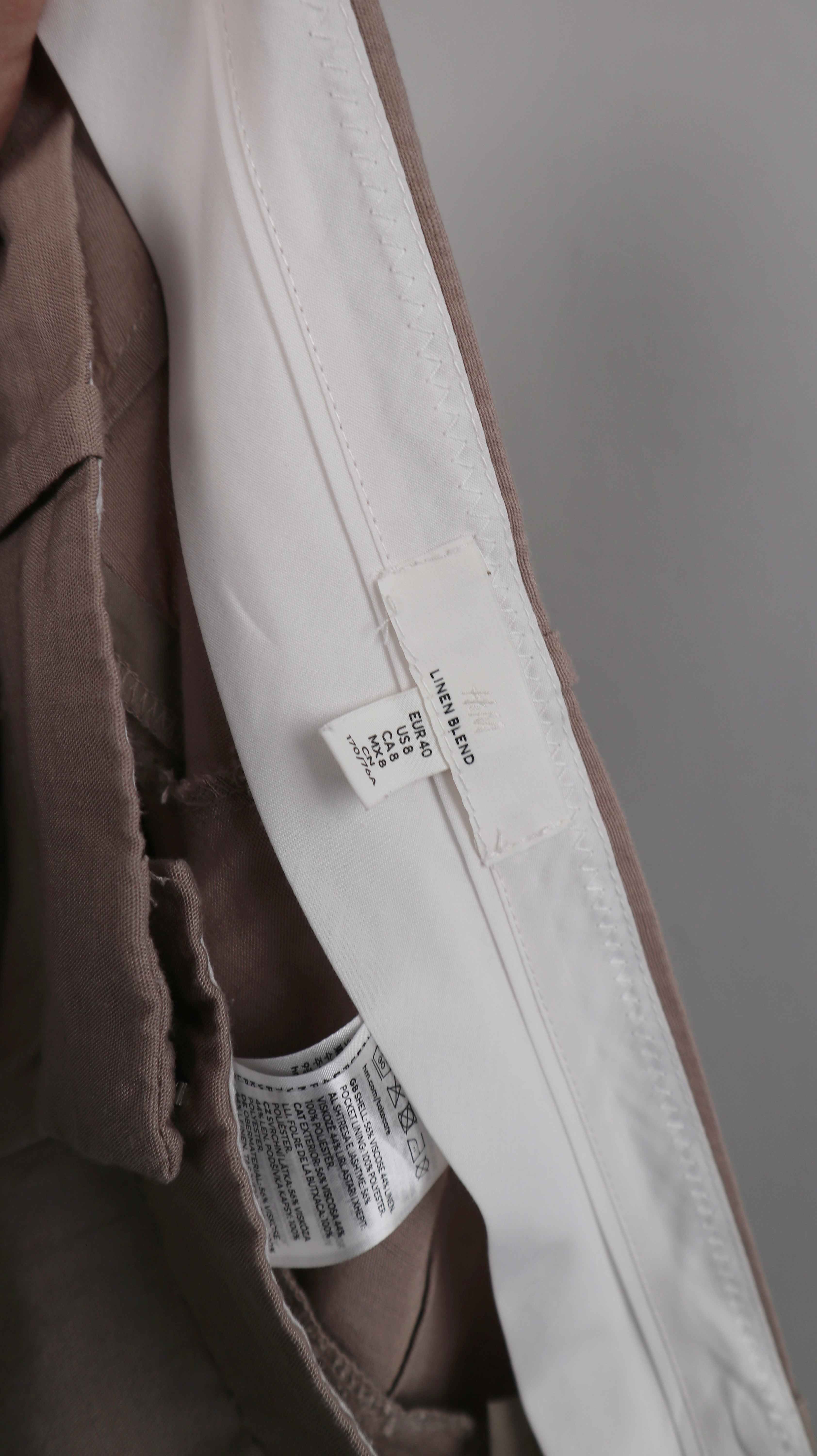 H&M Linen Blend Hose braun 40 L straight fit Leinenhose Beige Stoffhose