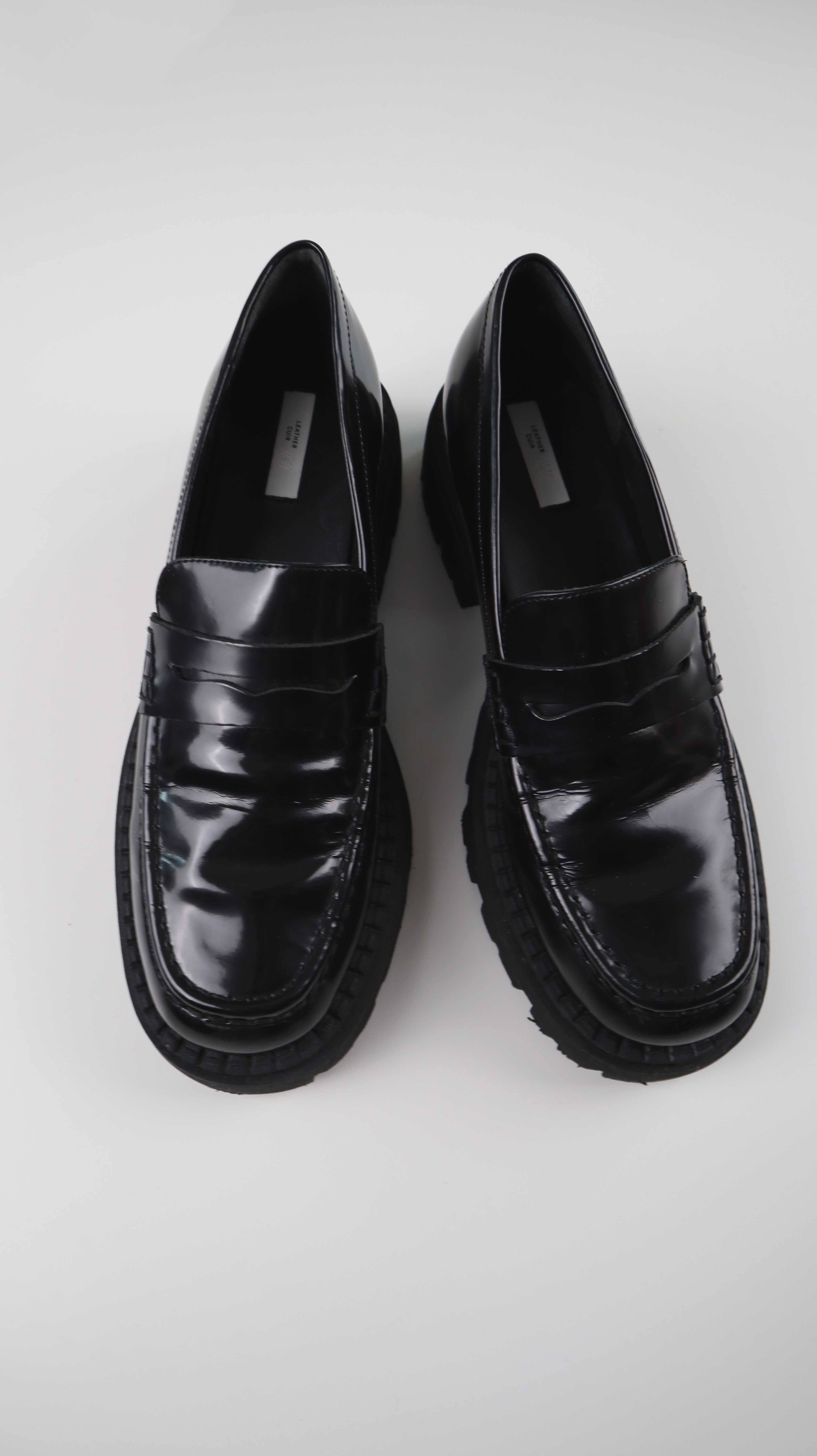 H&M Loafer Slipper schwarz Lackleder Halbschuhe 41 Lederslipper Mokassins