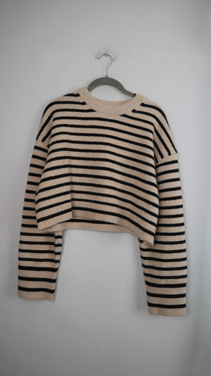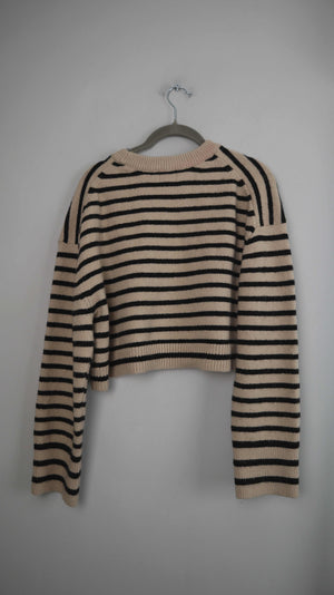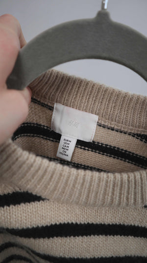 H&M Pullover Creme Beige gestreift 38 M Cropped