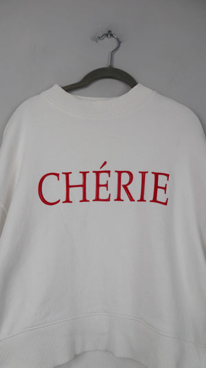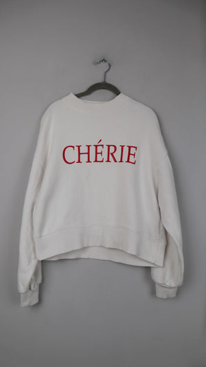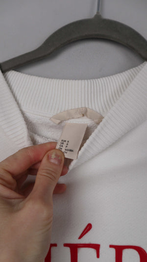 H&M Sweater Pullover weiß Cherie 36 S bedruckt uni einfarbig