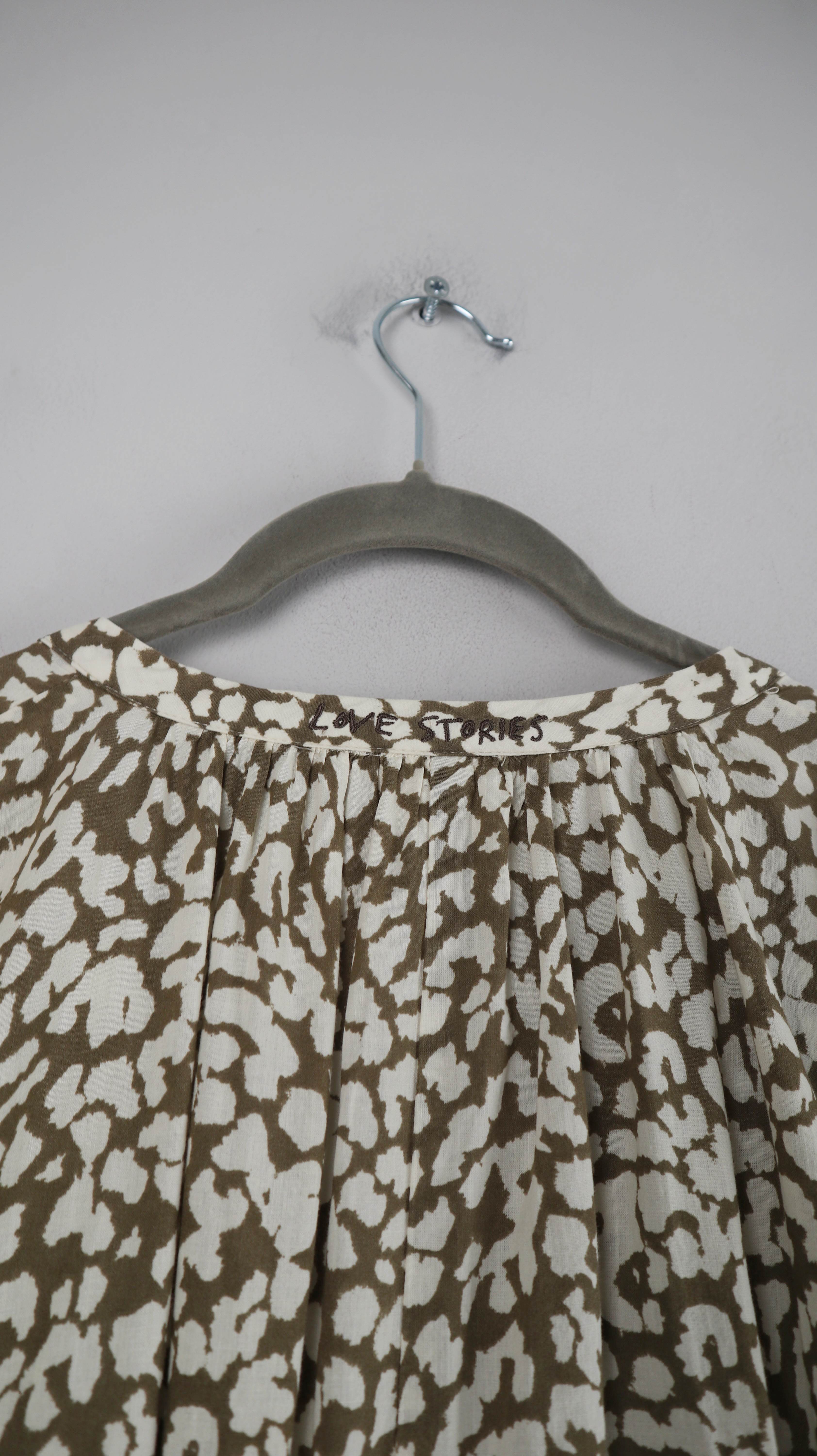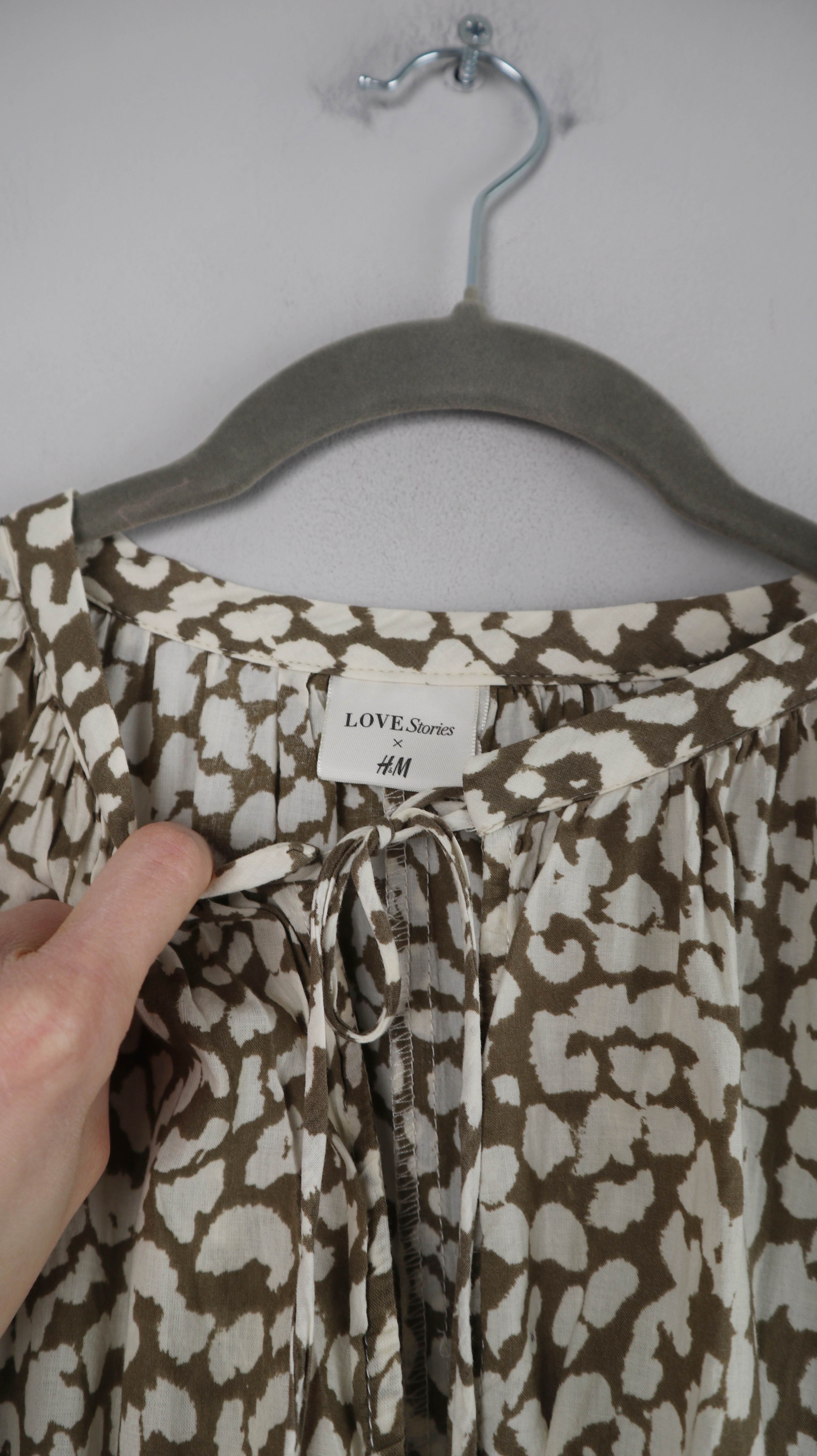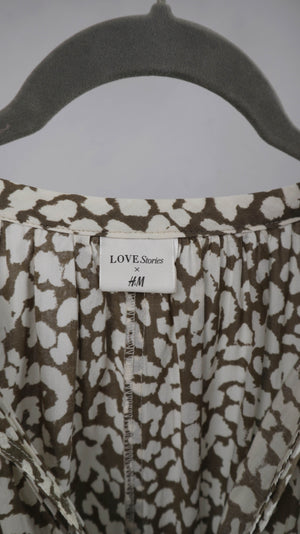 H&M x Love Stories Bluse Babydoll Animal print 36 S Braun weiß