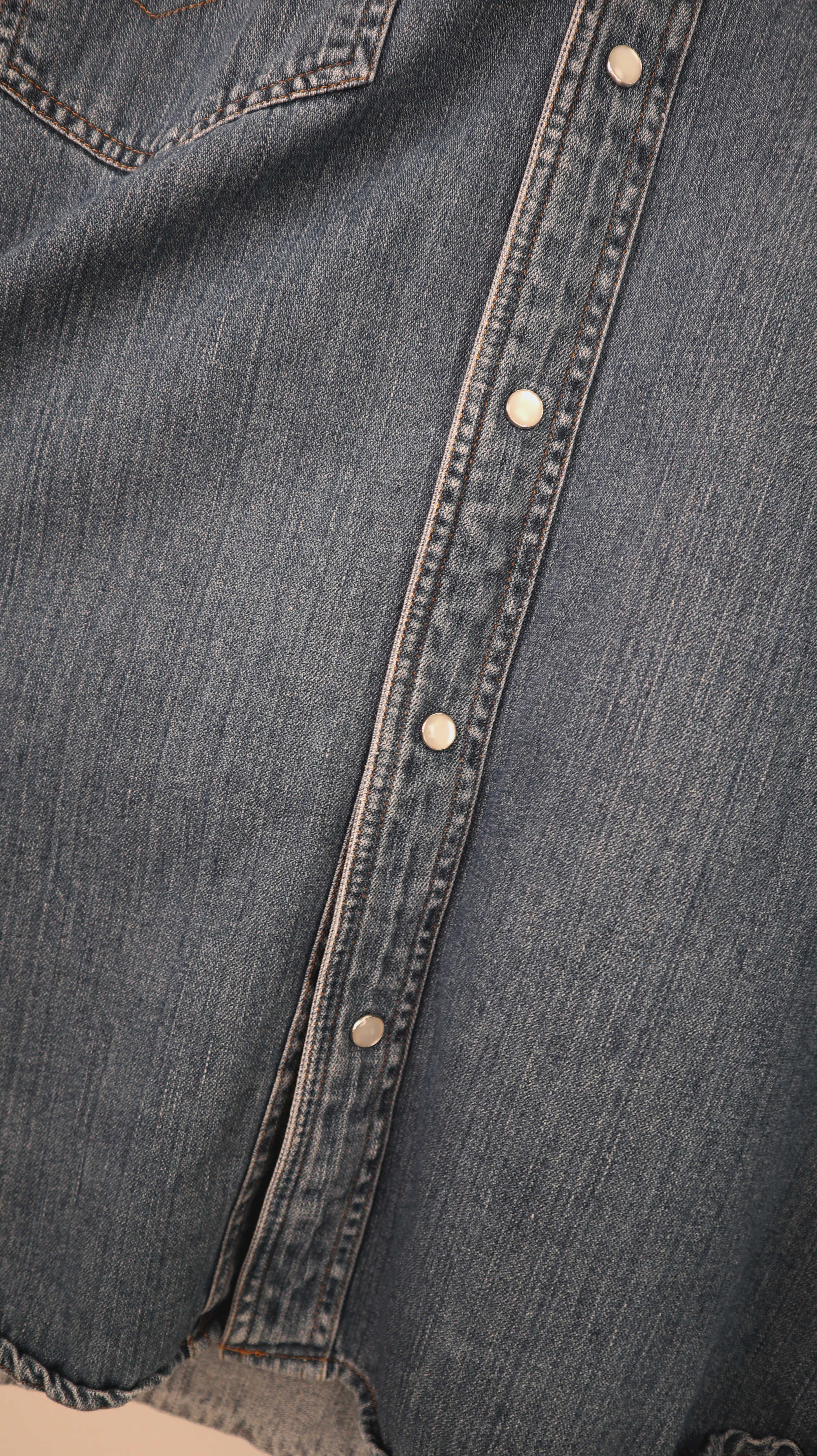 Blaues Vintagehemd von Wrangler Hero. Es ist in L ausgeschildert und hat Druckknöpfe. 57 cm Achselweite und 76 cm Länge. Plus Versand