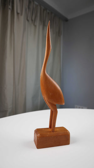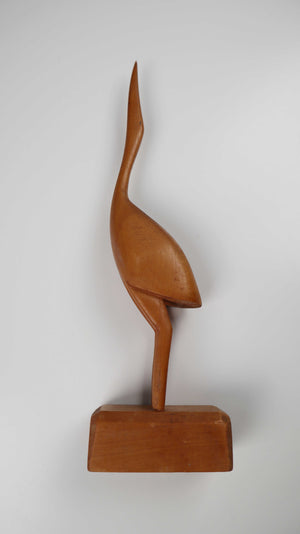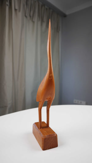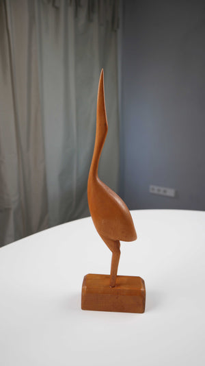 Holzkranich Kranich 50er 60er mid century Holzfigur braun Dekorationsskulptur