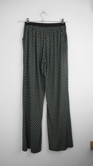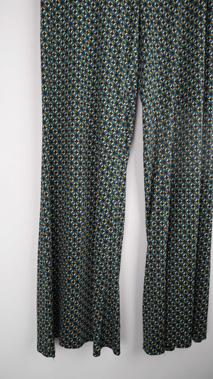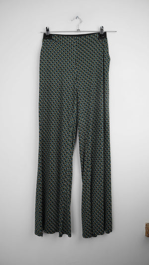Hose Sommerhose 38 M Muster Grün Schlaghose geometrisches Muster