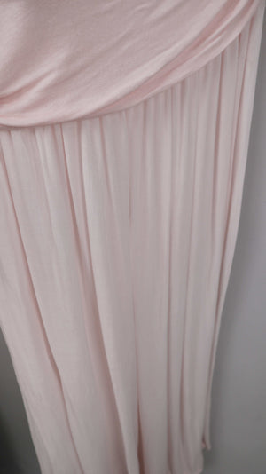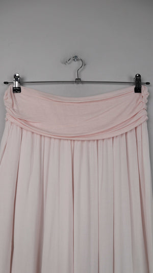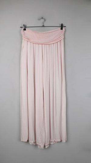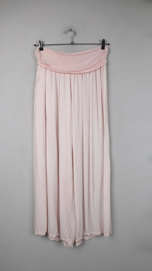 Sehr lockere Stoffhose in einem hellen Rosa. Sie ist ohne Marke und passt einer 40 L. 37 cm Bundweite, 92 cm Länge. Plus Versand