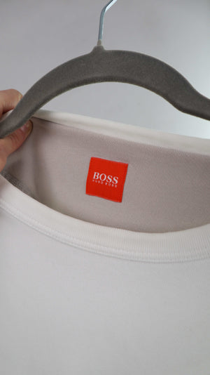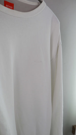 Hugo Boss Pullover Sweater Weiß Hoodie 40 L basic einfarbig