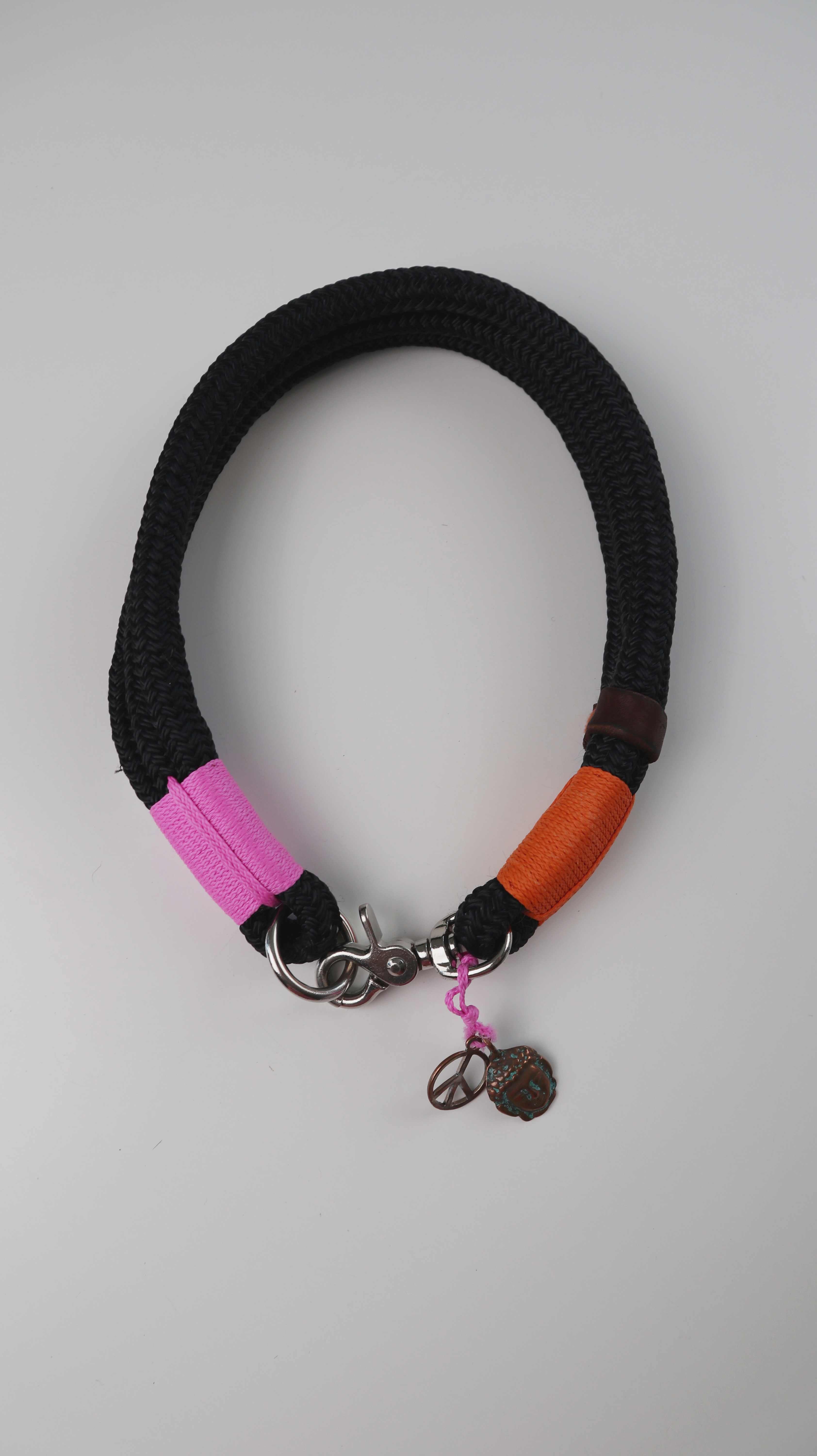 Hundehalsband Buddha Halsband schwarz Pink Orange Hippie Peace XL L