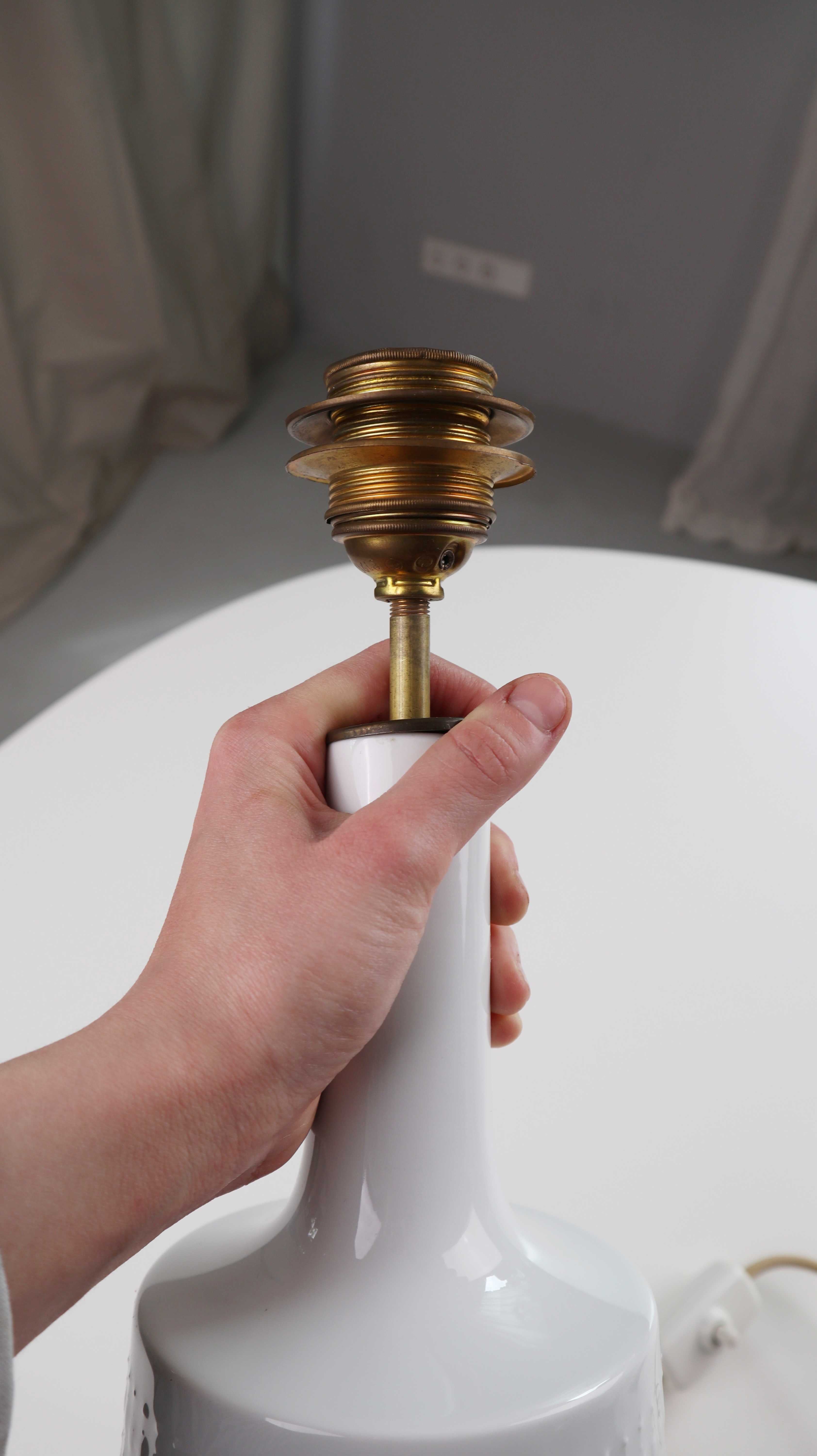 Porzellanlampenfuß in weiß von Hutschenreuther. Funktioniert wunderbar, ein normaler Lampenschirm kann kombiniert werden. Plus Versand