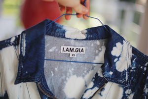 Jeansanzug von "I am GIA". Er ist in XS und passt einer 38 M, weil die Größe anders ausfällt. Er ist in blau weiß. 45 cm Achselweite. Plus Versand