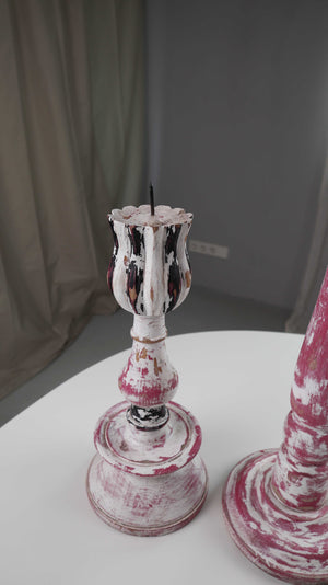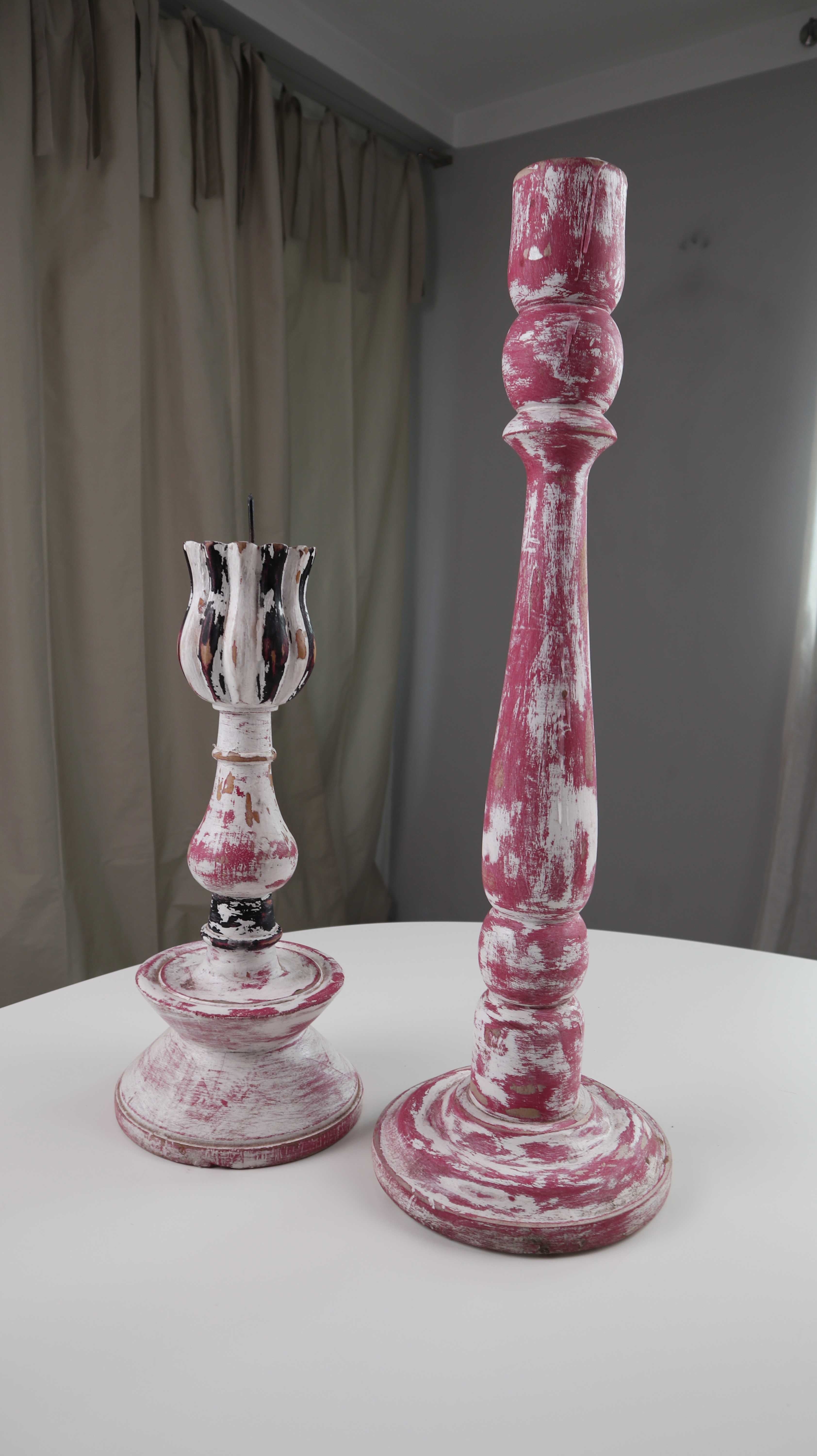 Impressionen Kerzenständer Kerzenhalter rosa weiß Holz Shabby Chic