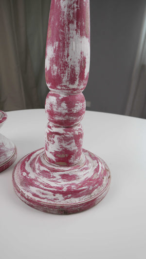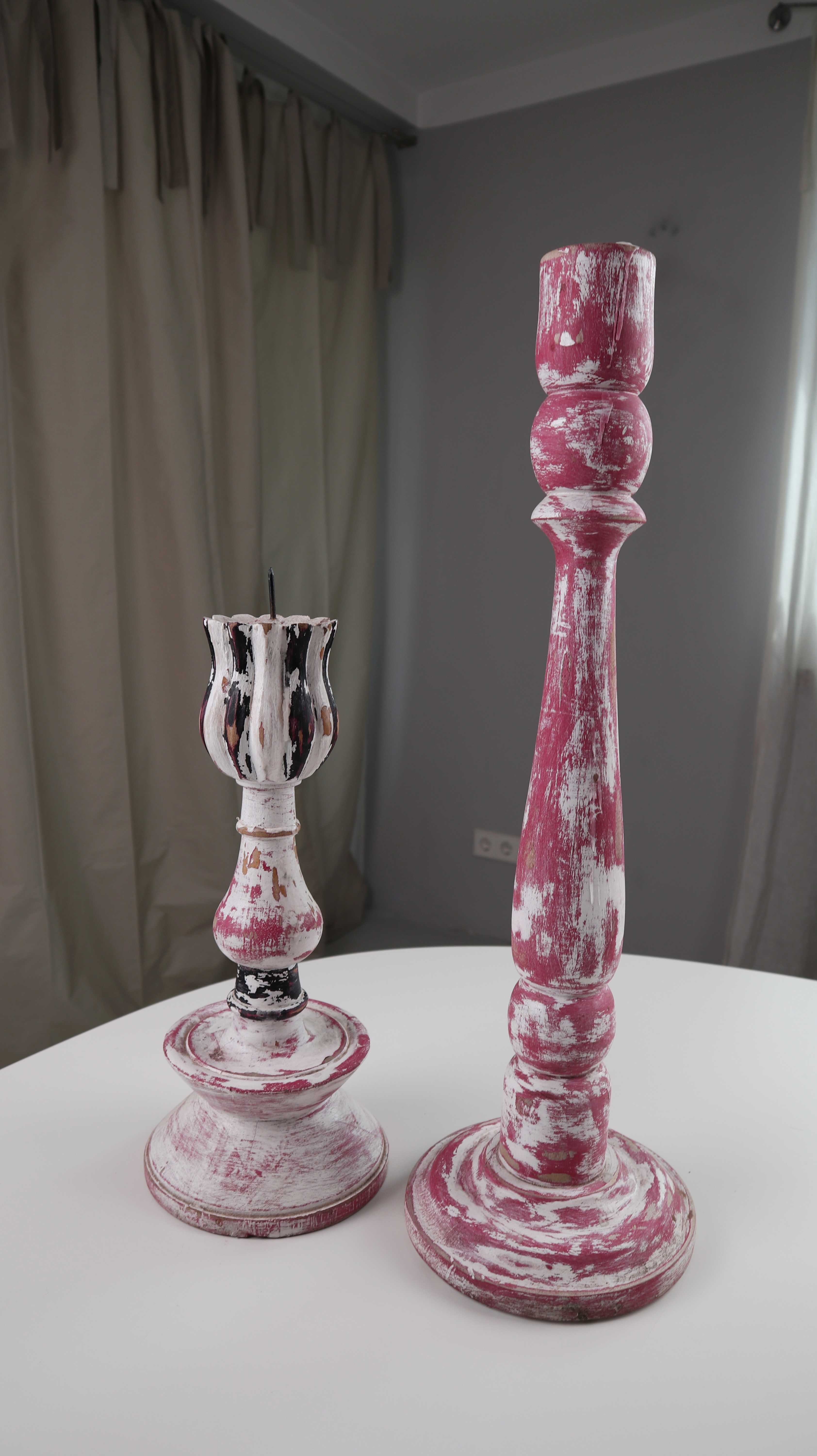 Set von zwei Kerzenständern aus Holz. Plus Versand