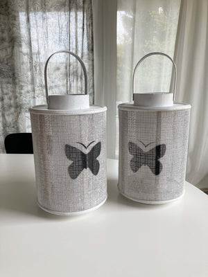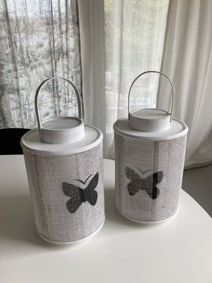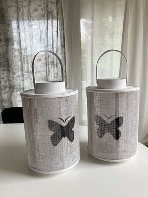 Impressionen Laternen Lampen Balkonlaternen Dekolaternen geflecht weiß Schmetterling