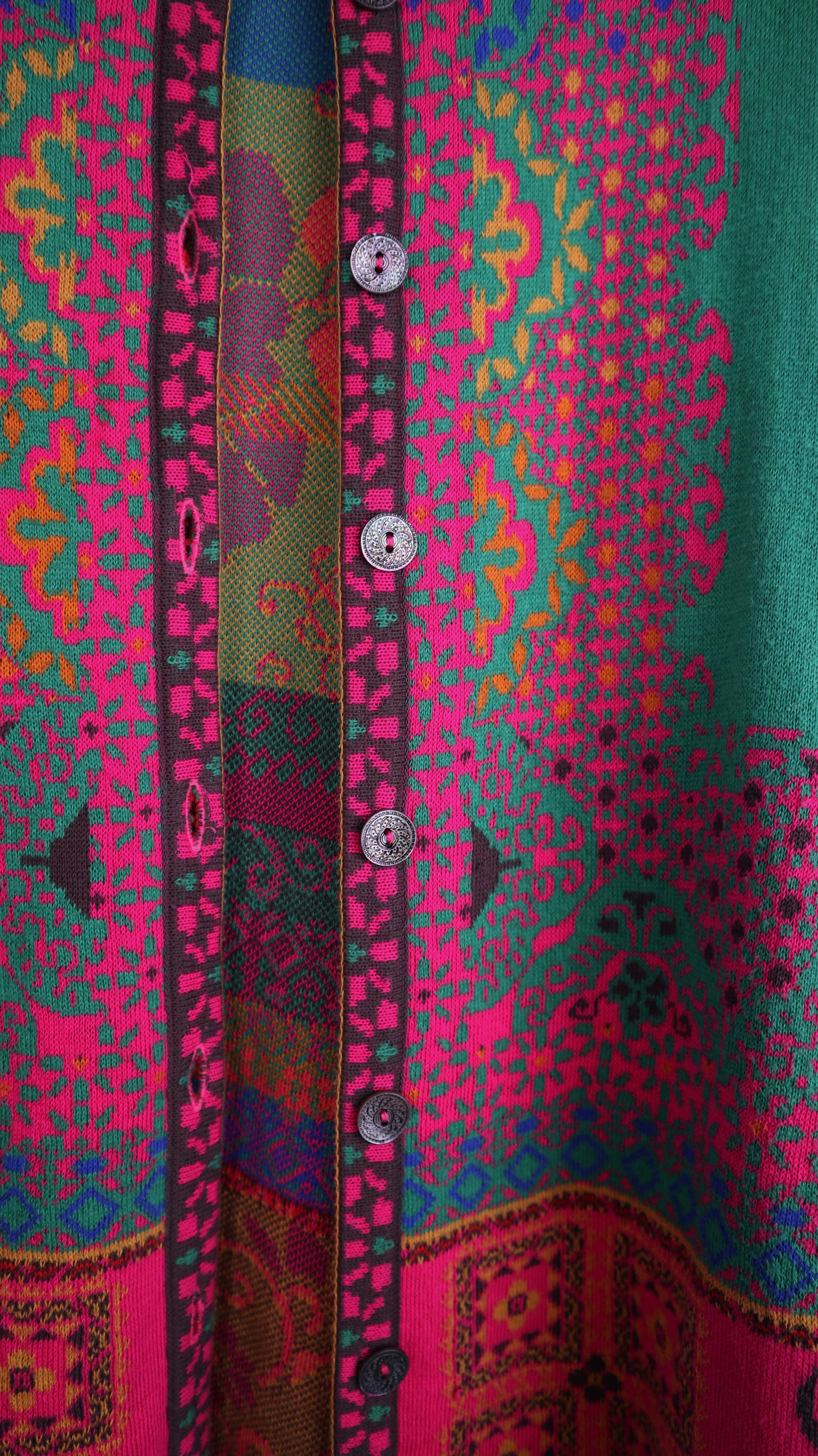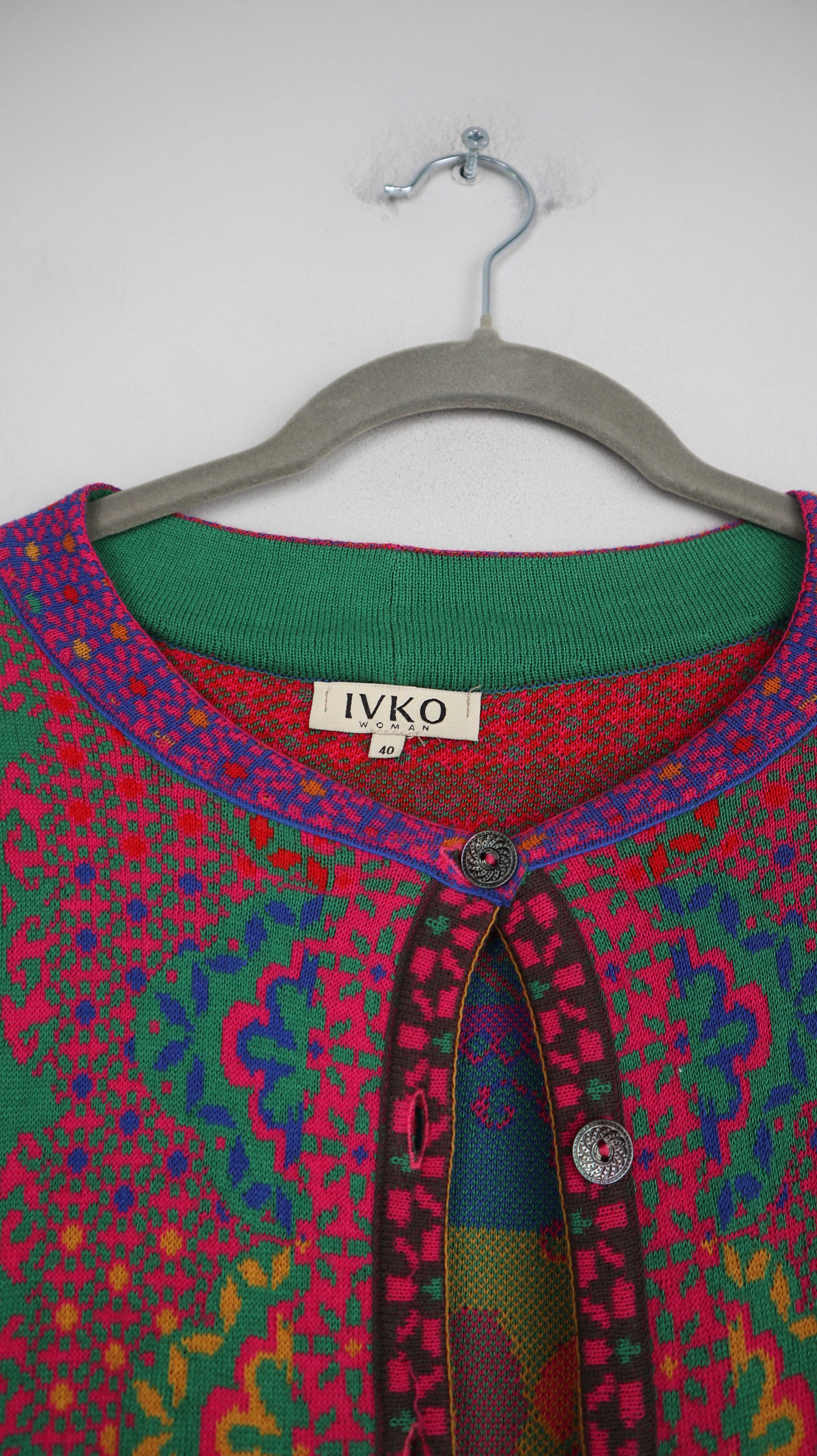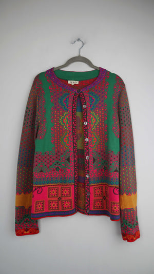 Ivko Strickjacke bunt 40 L Cardigan Baumwolle Muster gemustert Rot