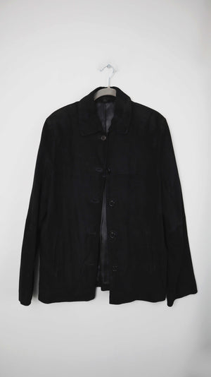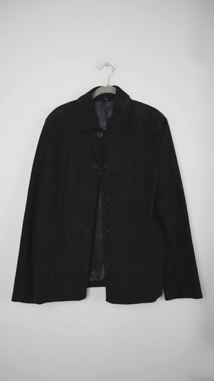 Jacke Schwarz Wildleder Lederjacke basic 38 M basic einfarbig Blazer