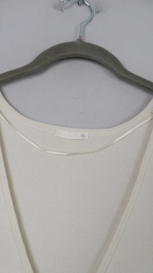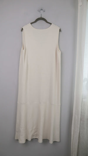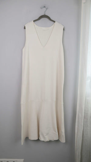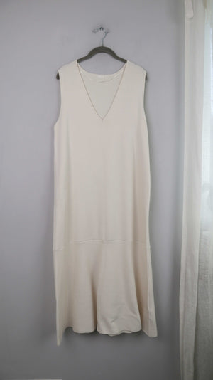 Japan Kleid Maxi Maxikleid Creme Beige XL basic einfarbig V-Ausschnitt