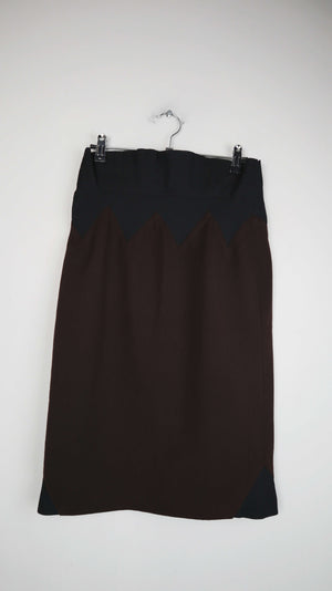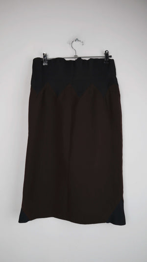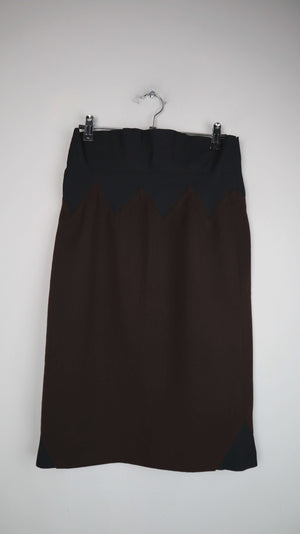 Braun schwarzer Stiftrock von Jean Paul Gautier. Er ist Vintage und passt einer 38 M. 34 cm Bundweite, 63 cm Länge. Oben Gummizug. Plus Versand