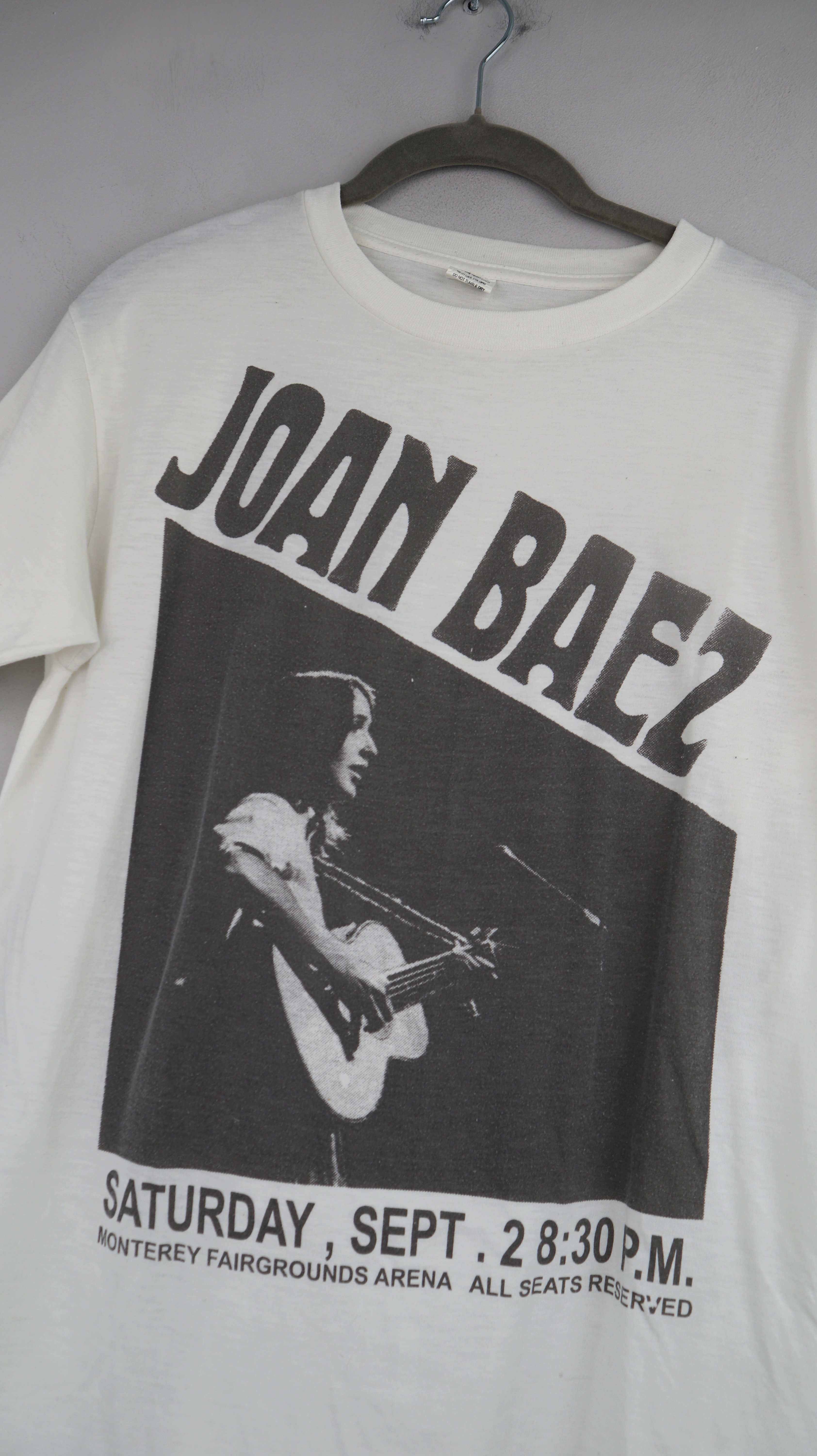 Basic Shirt in weiß mit Print von Joan Baez. Es passt einer 38 M und ist vom Camden Lock Market in London. 50 cm Achselweite und 68 cm Länge. Plus Versand