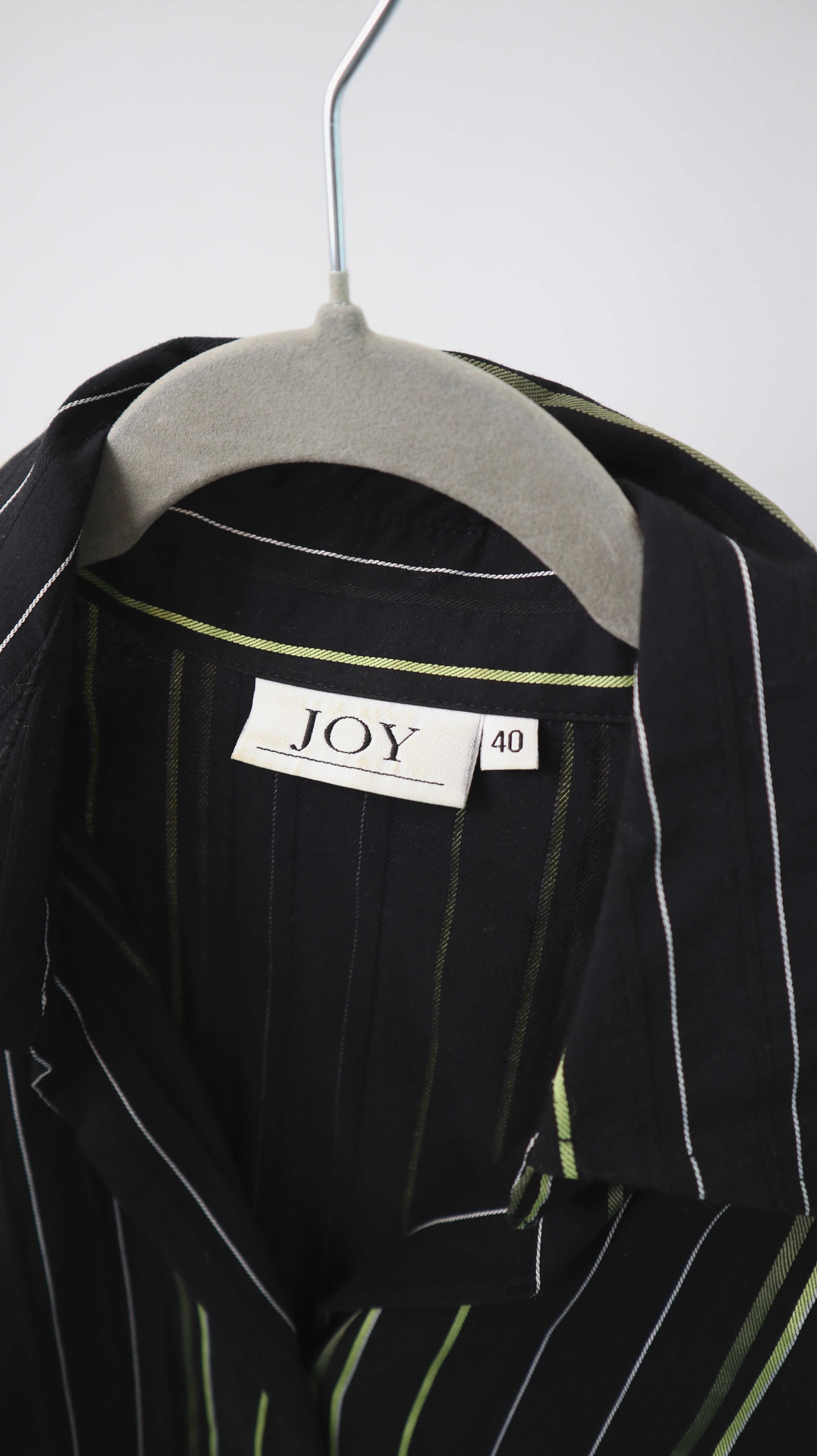 Joy Bluse Hemd schwarz grün 40 L 90s Vintage gestreift Nadelstreifen