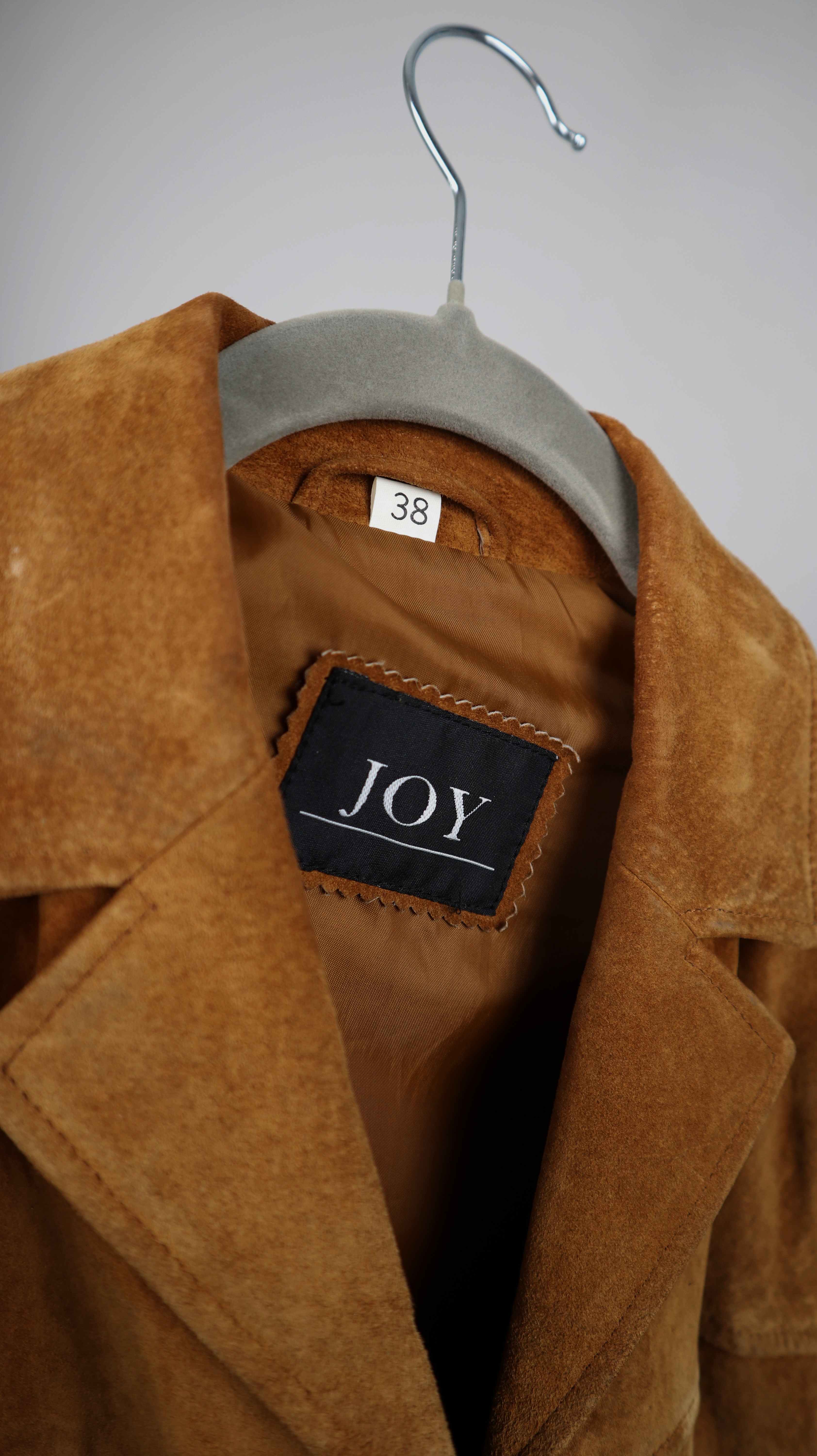 Braune Lederjacke aus Wildleder von JOY in 38 M mit kleinen Benutzungsspuren. 47 cm Achselweite und 75 cm Länge. Plus Versand