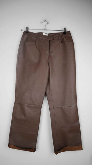 Jürgen Michaelsen Hose Lederhose 40 L Braun Leder straight leg