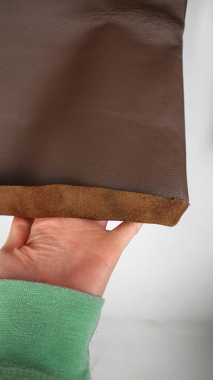 Braune Lederhose von Jürgen Michaelsen in einer 40 L. 40 cm Bundweite, 26 cm Schritthöhe und 67 cm Innenbeinlänge. Plus Versand