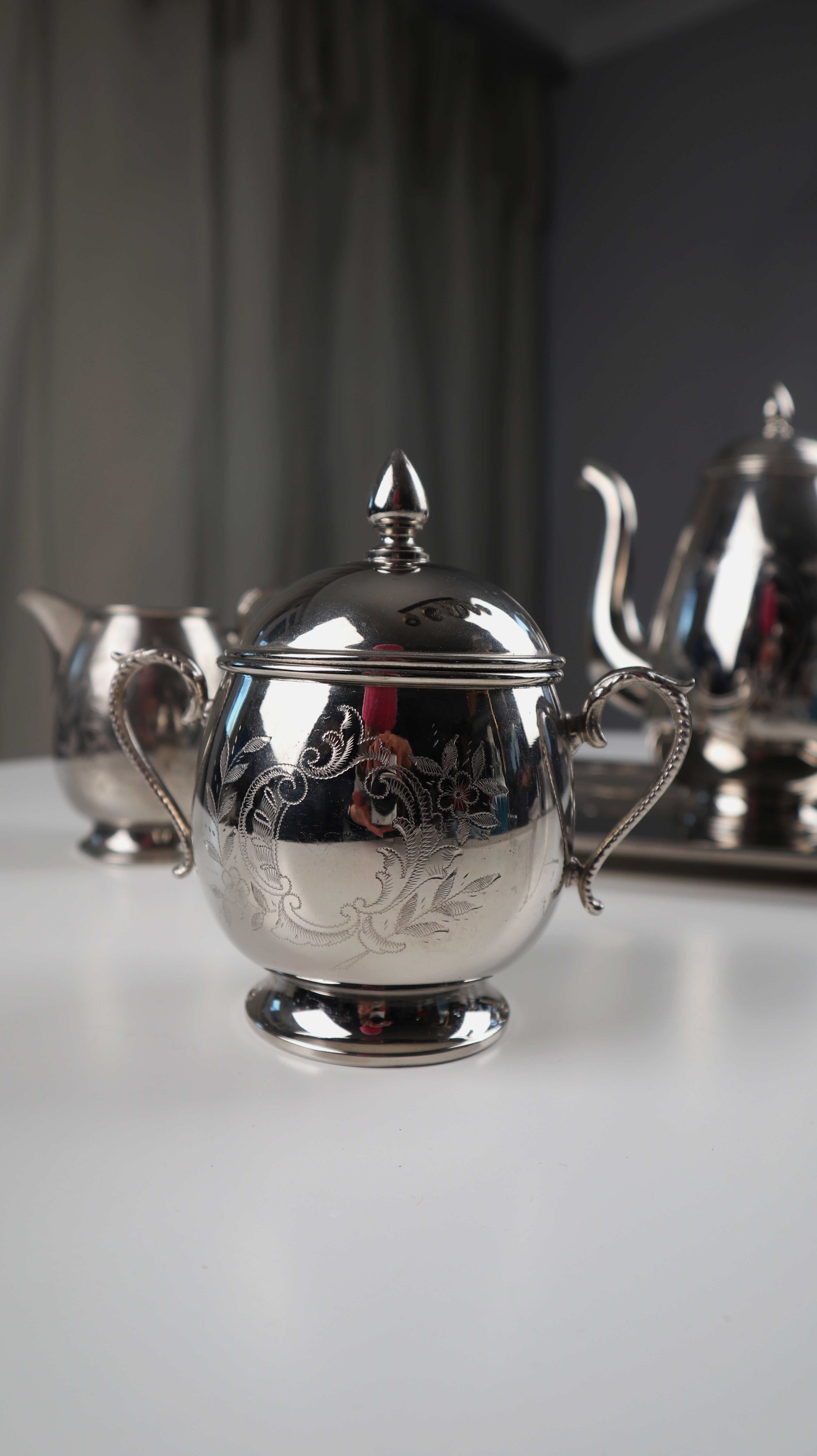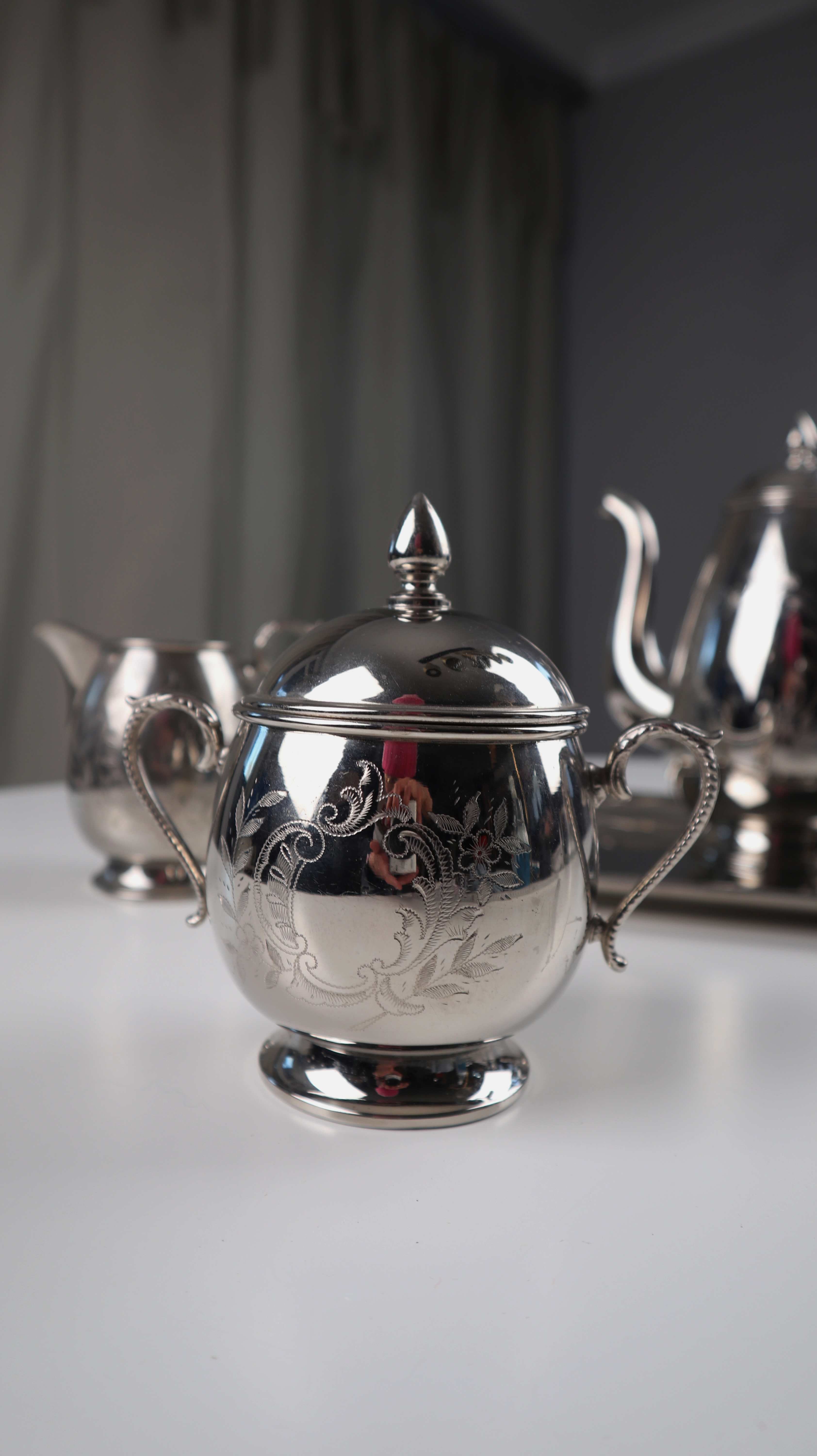 Kaffeeservice mit Serviertablett Silber versilbert Teekanne Zuckerdose