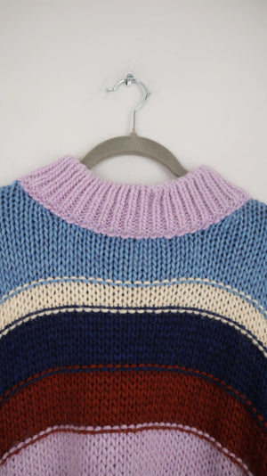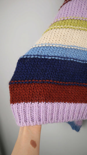 Gestreifter Pullover mit Wolle und Alpaka von Kauf Dich Glücklich. Ausgeschilderte XL, man kann ihn aber auch oversized tragen. 83 cm Achselweite und 57 cm Länge. Plus Versand