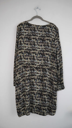 Kleid in Midilänge ohne Marke. Es passt einer 40 L, 53 cm Achselweite und 91 cm Länge. Plus Versand