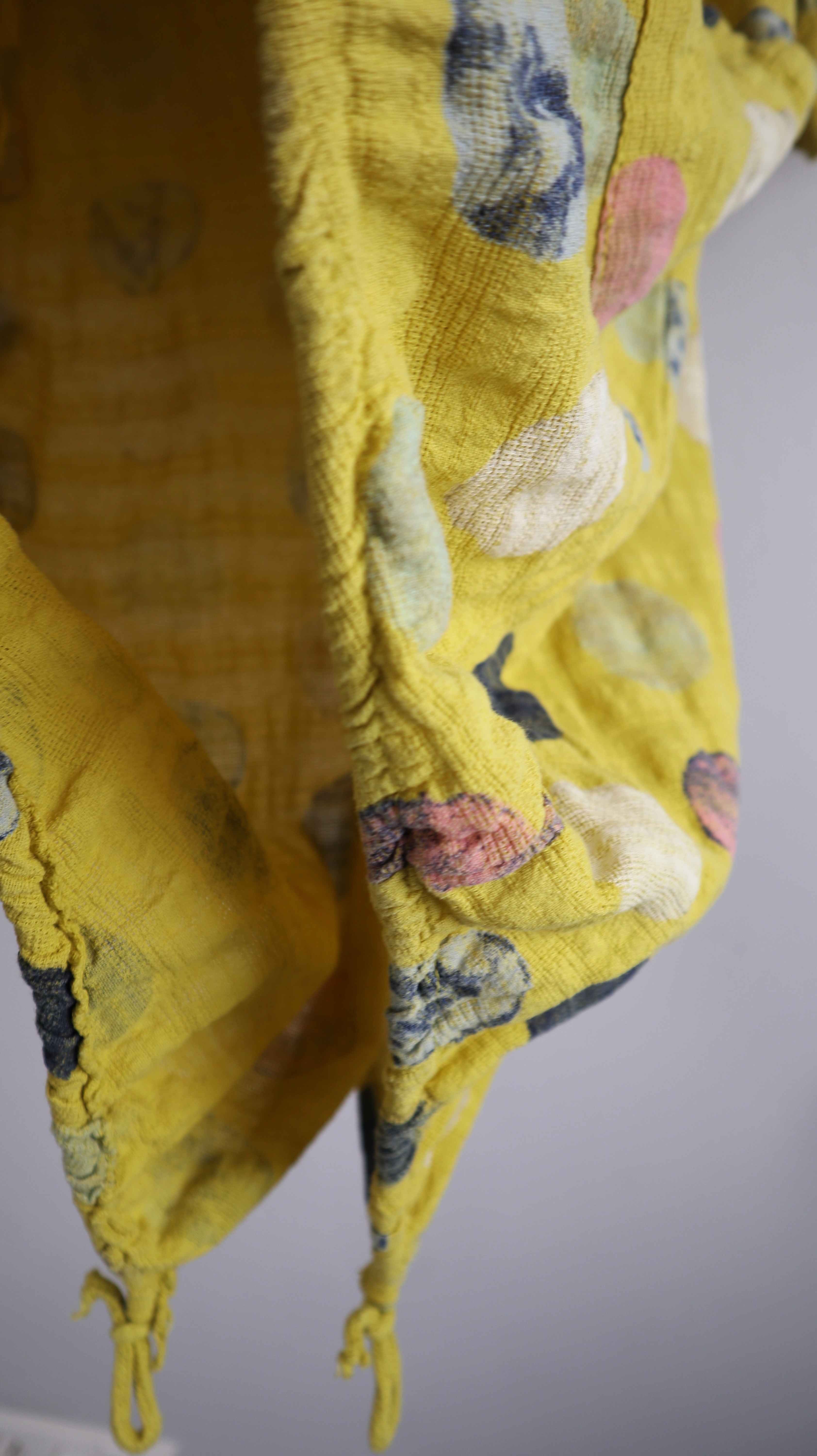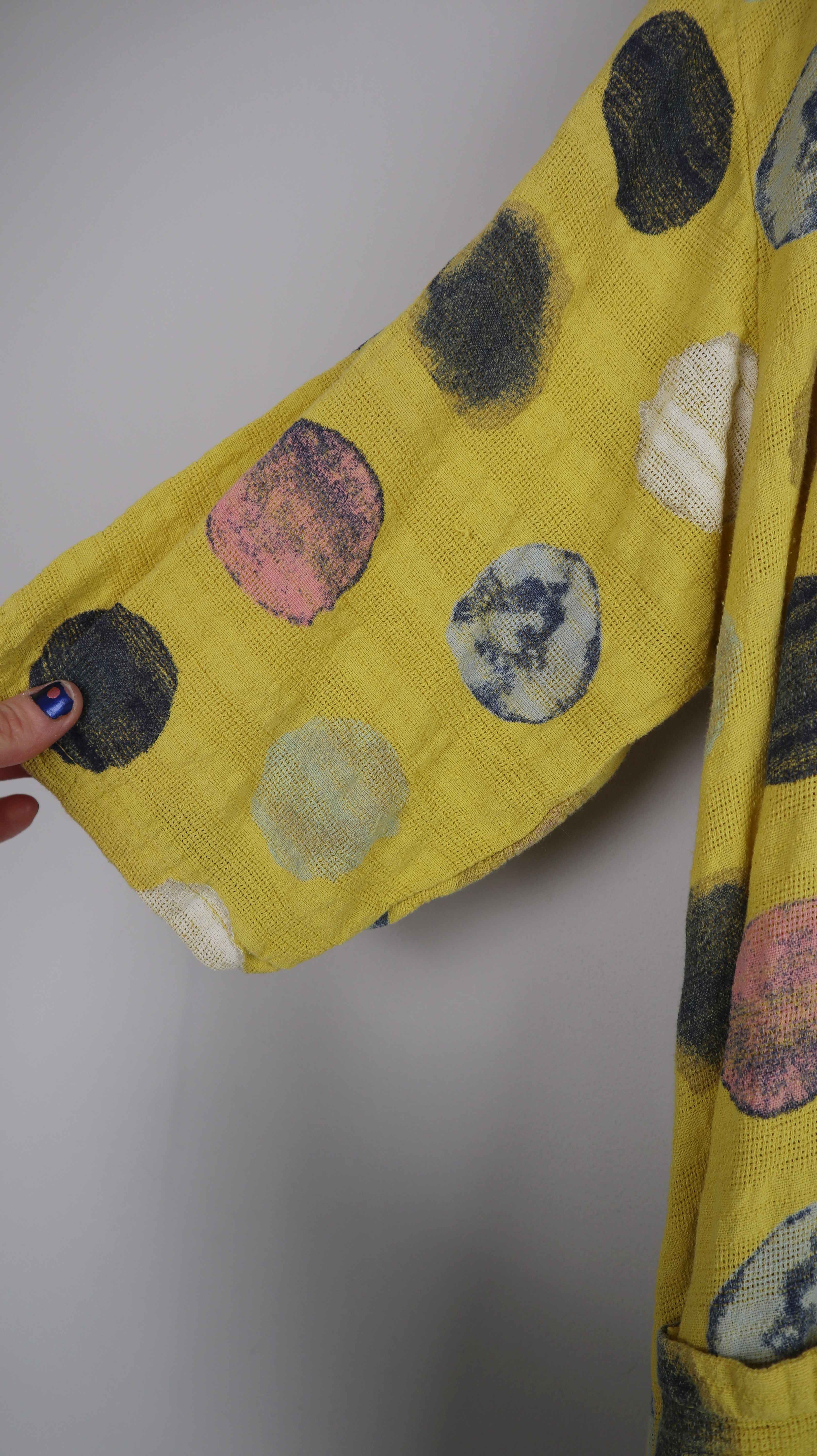 Kleid Midi Gelb 40 L Leinen gepunktet Midikleid Sommerkleid oversized