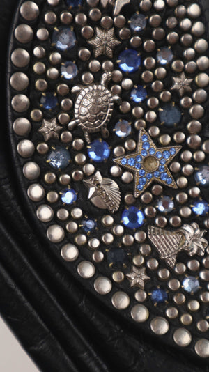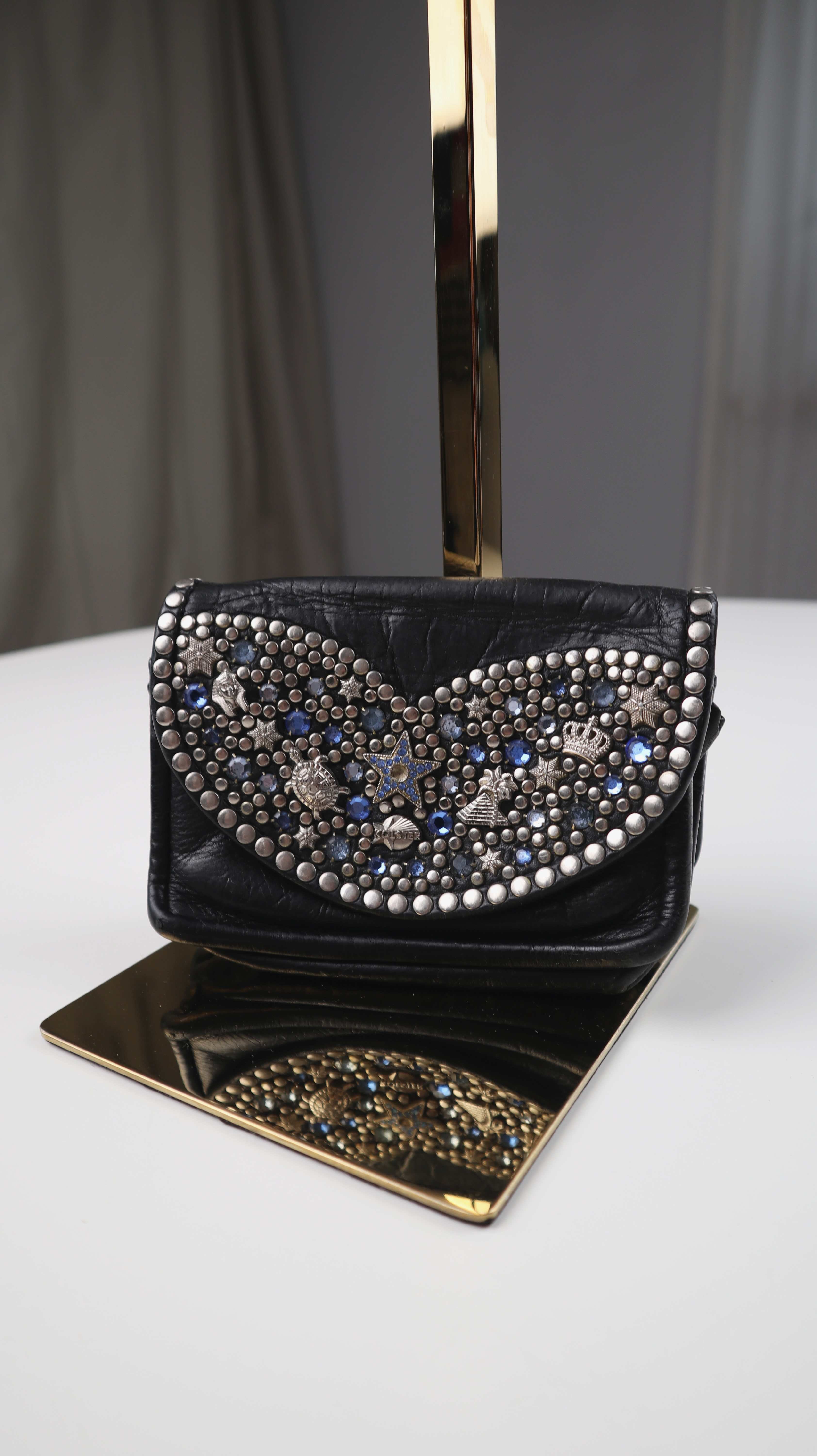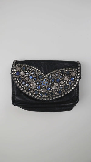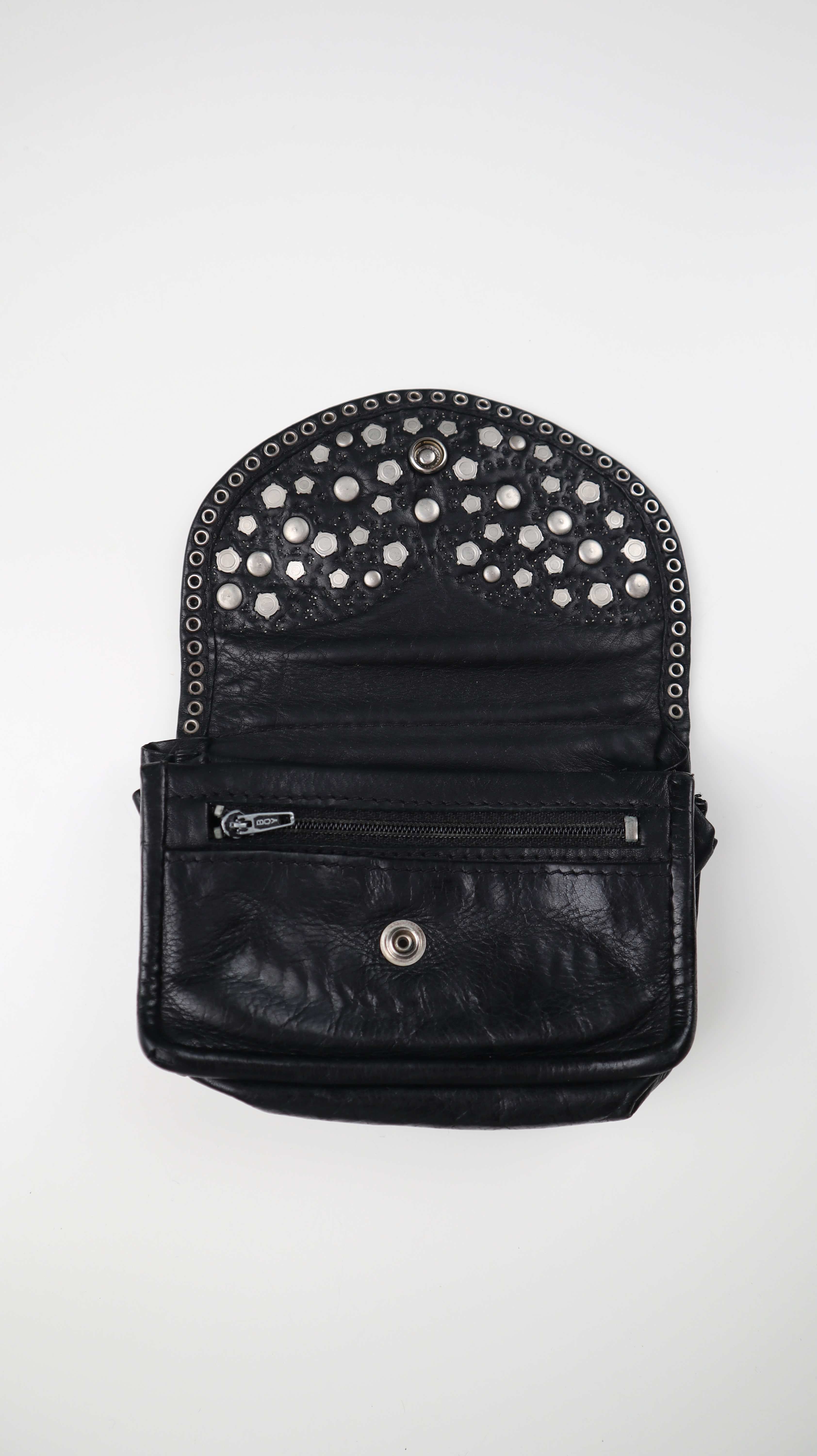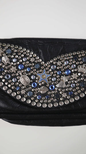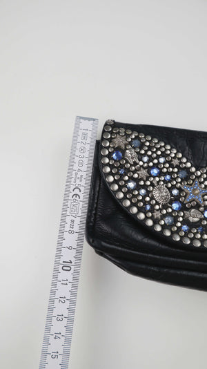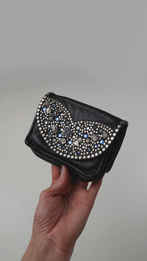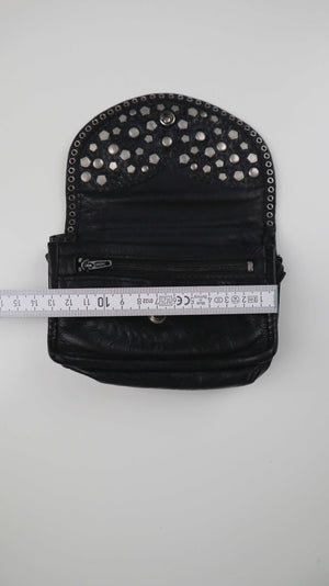 Kolster true Vintage Geldbörse Portemonnaie schwarz Leder Nieten Strass