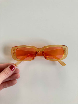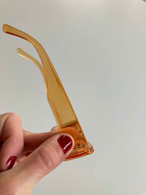 Sonnenbrille ohne Sehstärke mit orangenen Gläsern. Plus Versand