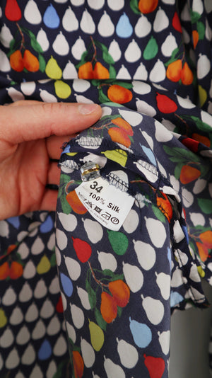 LaJolie Bluse Seide Birnen Bunt 34 Seidenbluse bunt Obst langärmlig