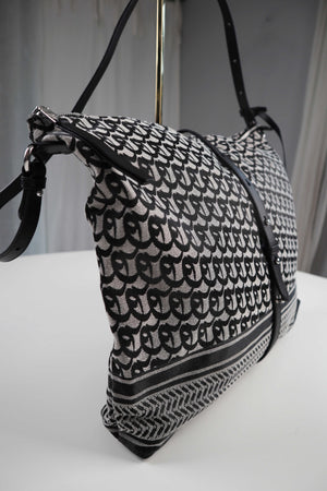 Lala Berlin Tasche Handtasche Umhängetasche Neu Stoff gemustert Schwarz Grau