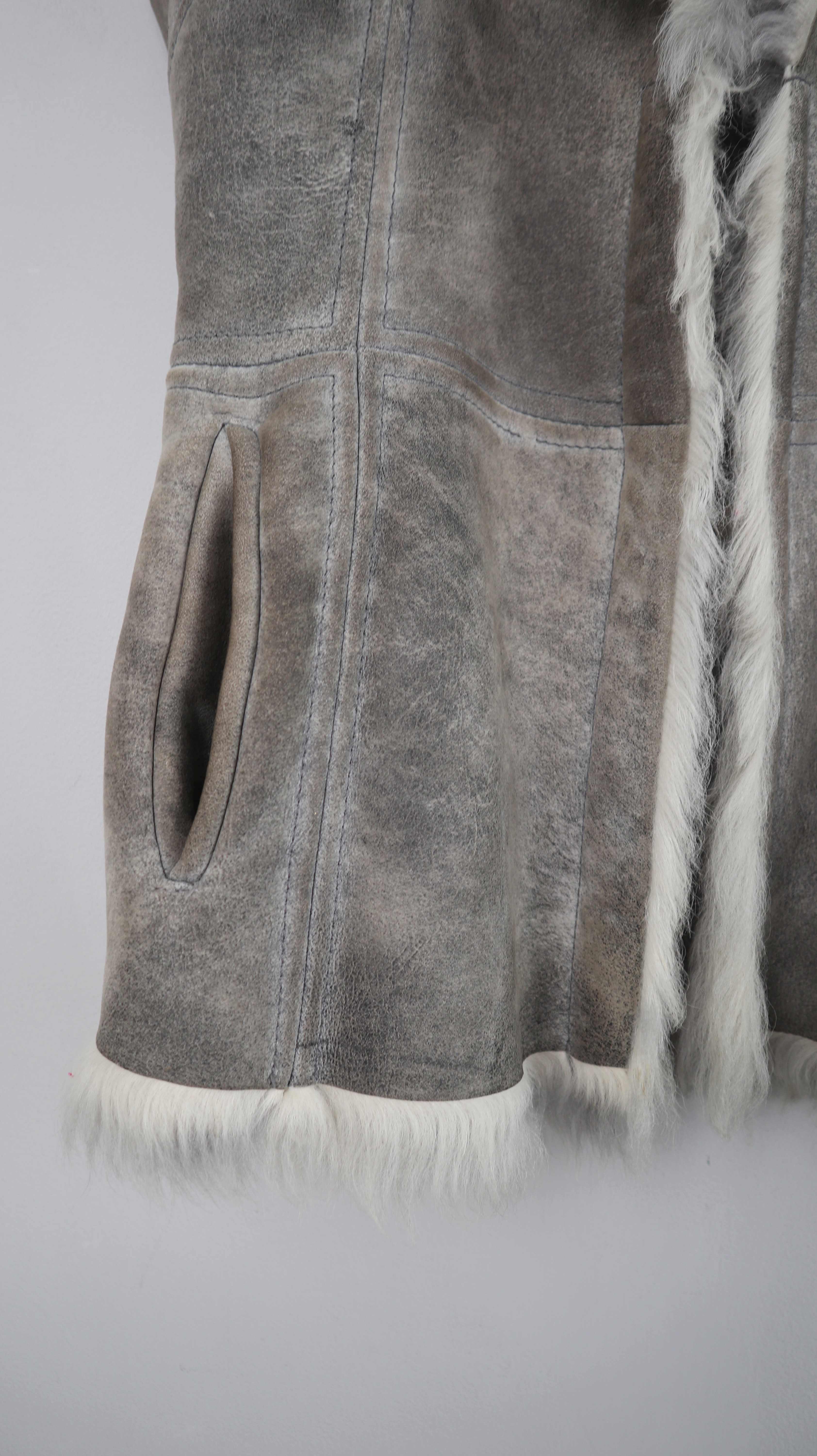 Lammfellweste Grau Lammfell Leder Lederweste 38 M gefüttert