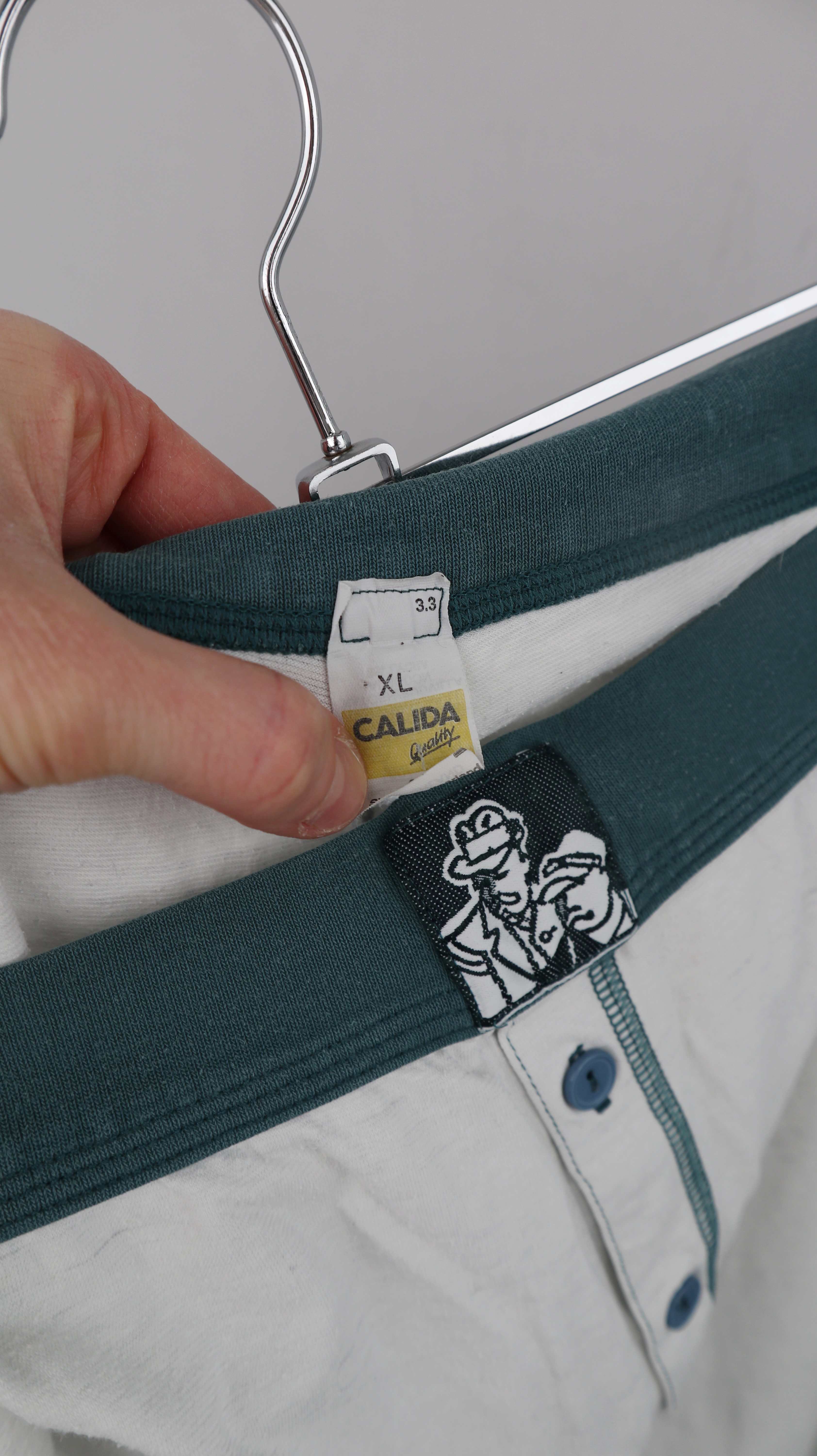 Lange Unterhose Jogger Calida XL weiß Türkis Winterhose Vintage