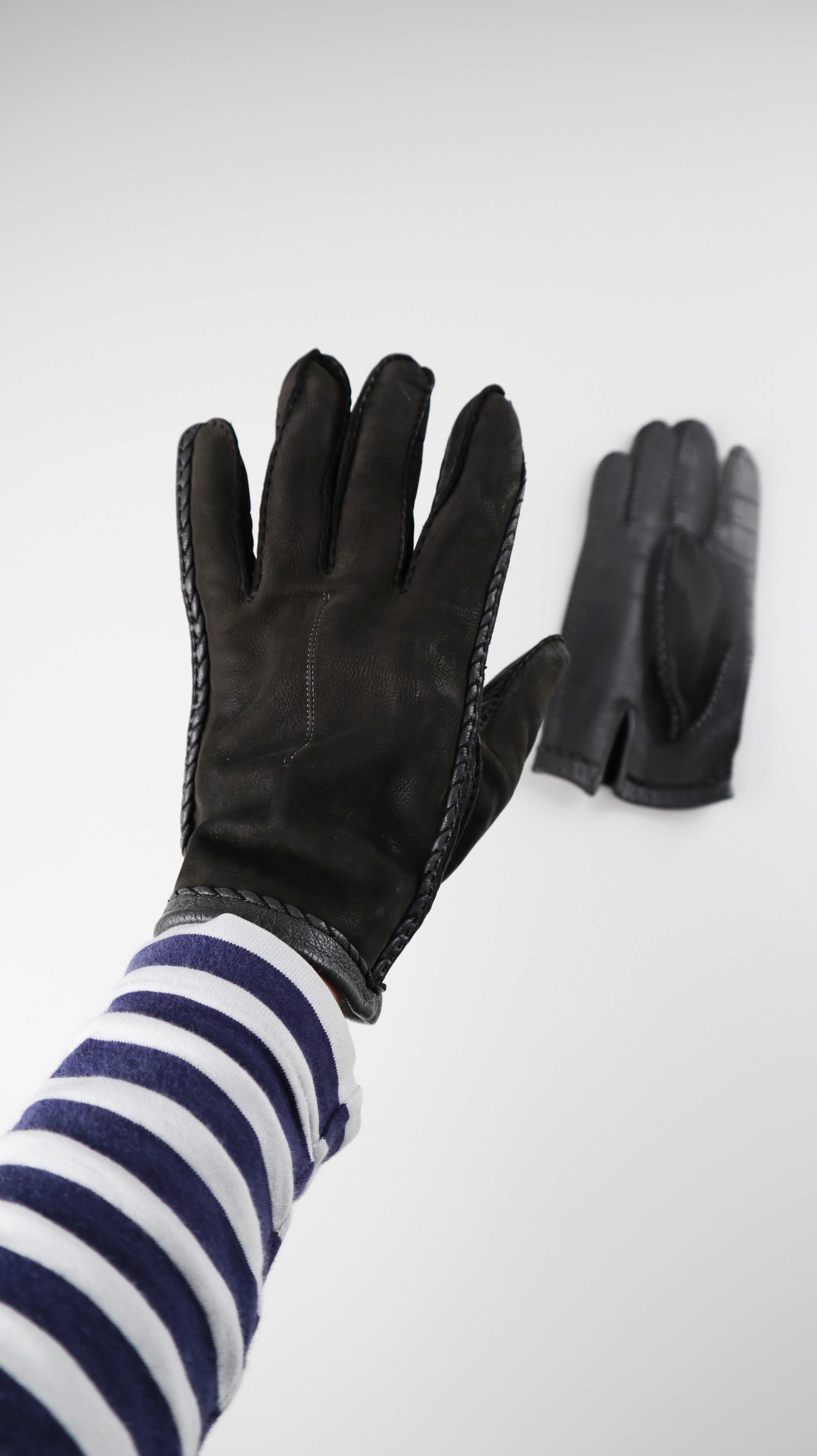 Lederhandschuhe M true Vintage Handschuhe Leder Grün Grau