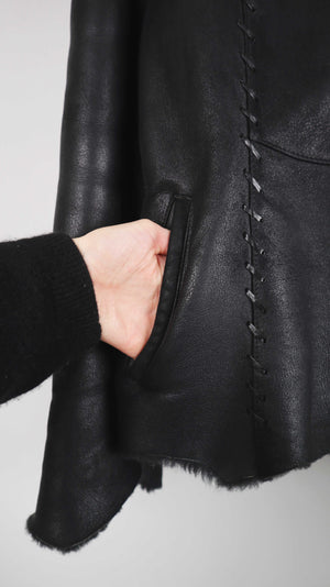 Lederjacke schwarz Lammfelljacke 38 M gefüttert 40 L Jacke Felljacke