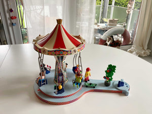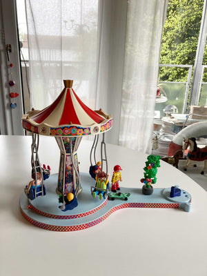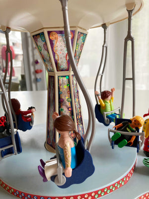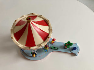 Kleines Karussell von Lego mit einer manuellen Kurbel und kleinen Figuren. Oben über das Dach lässt sich ein Blinklicht aktivieren. Plus Versand