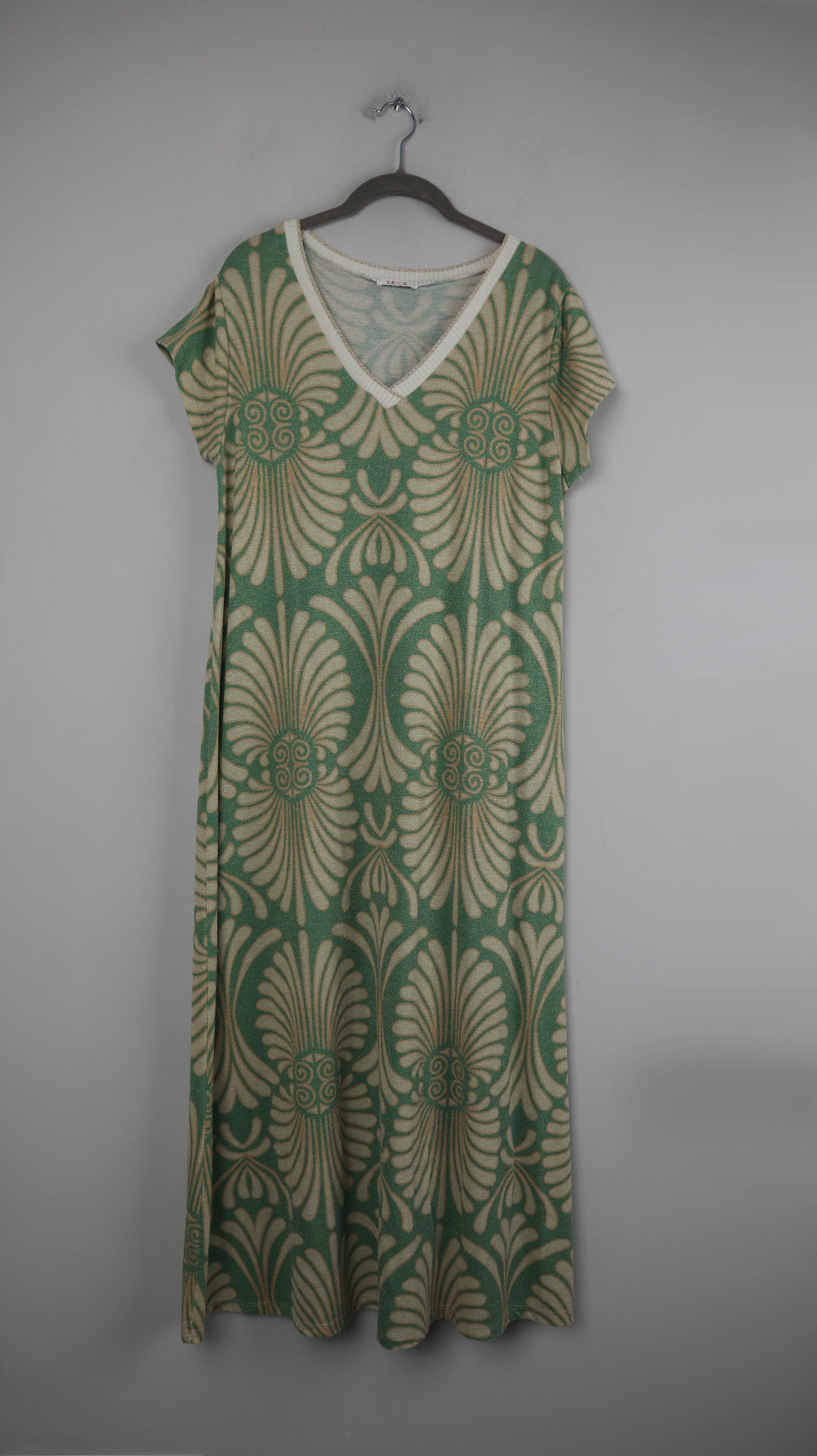 Len's Kleid Grün Maxi 40 L Sommerkleid V-Ausschnitt
