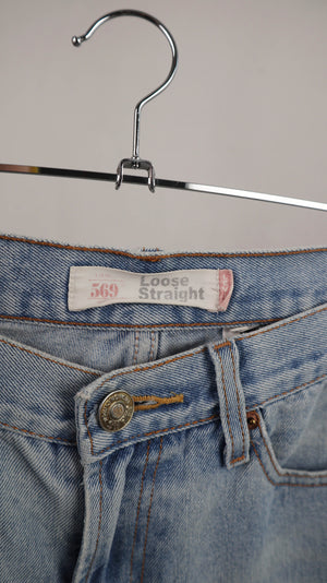 Jeans von Levis, Modell Loose Straight 569. 40 cm Bundweite, 23 cm Schritthöhe und 74 cm Innenbeinlänge. Plus Versand