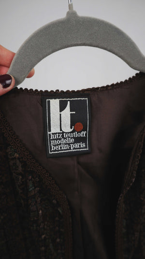 Braune Samtweste von Lutz Teutloff mit schönen Details. 45 cm Achselweite und 40 cm Länge. Plus Versand