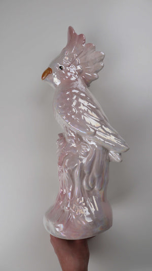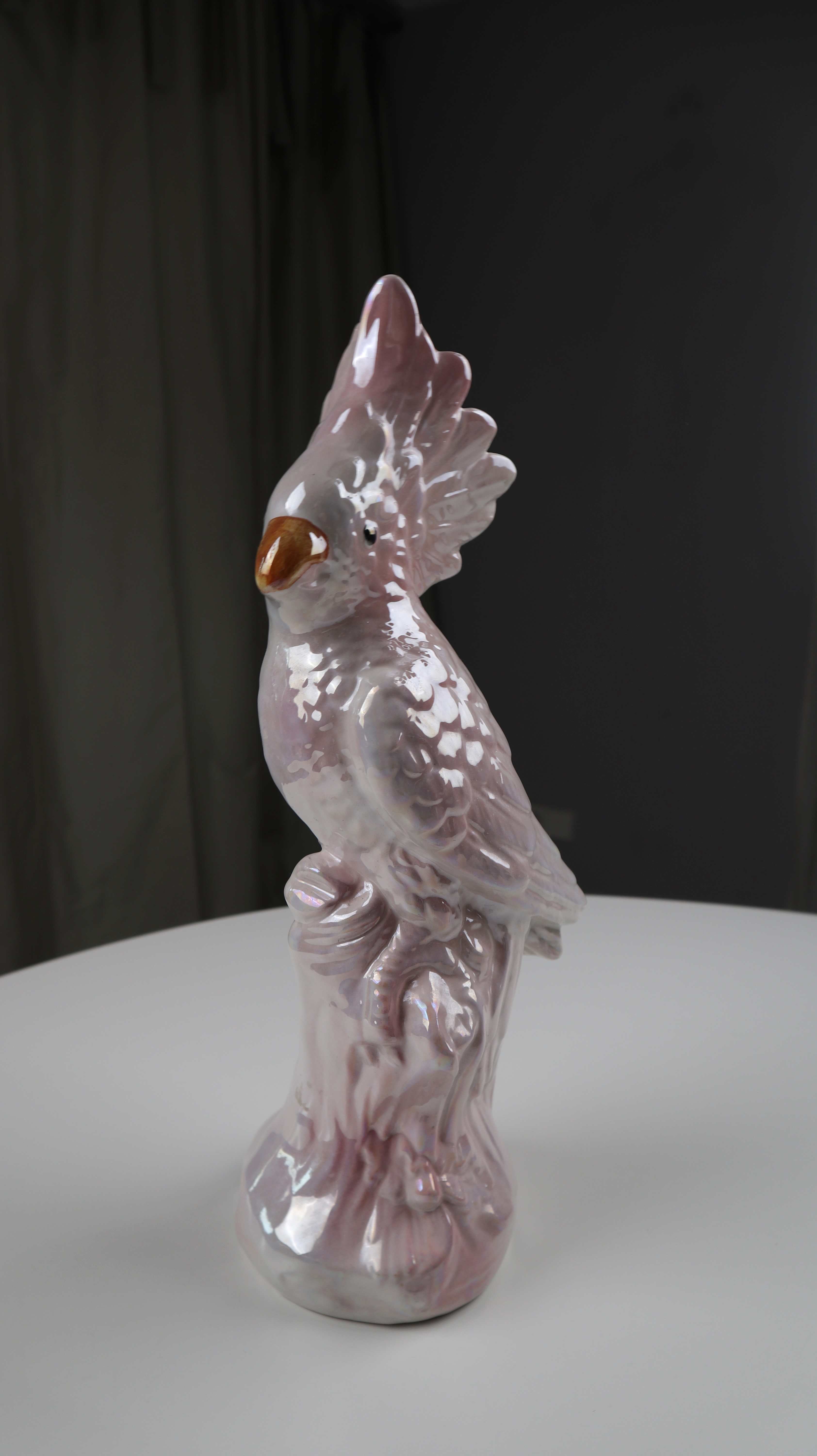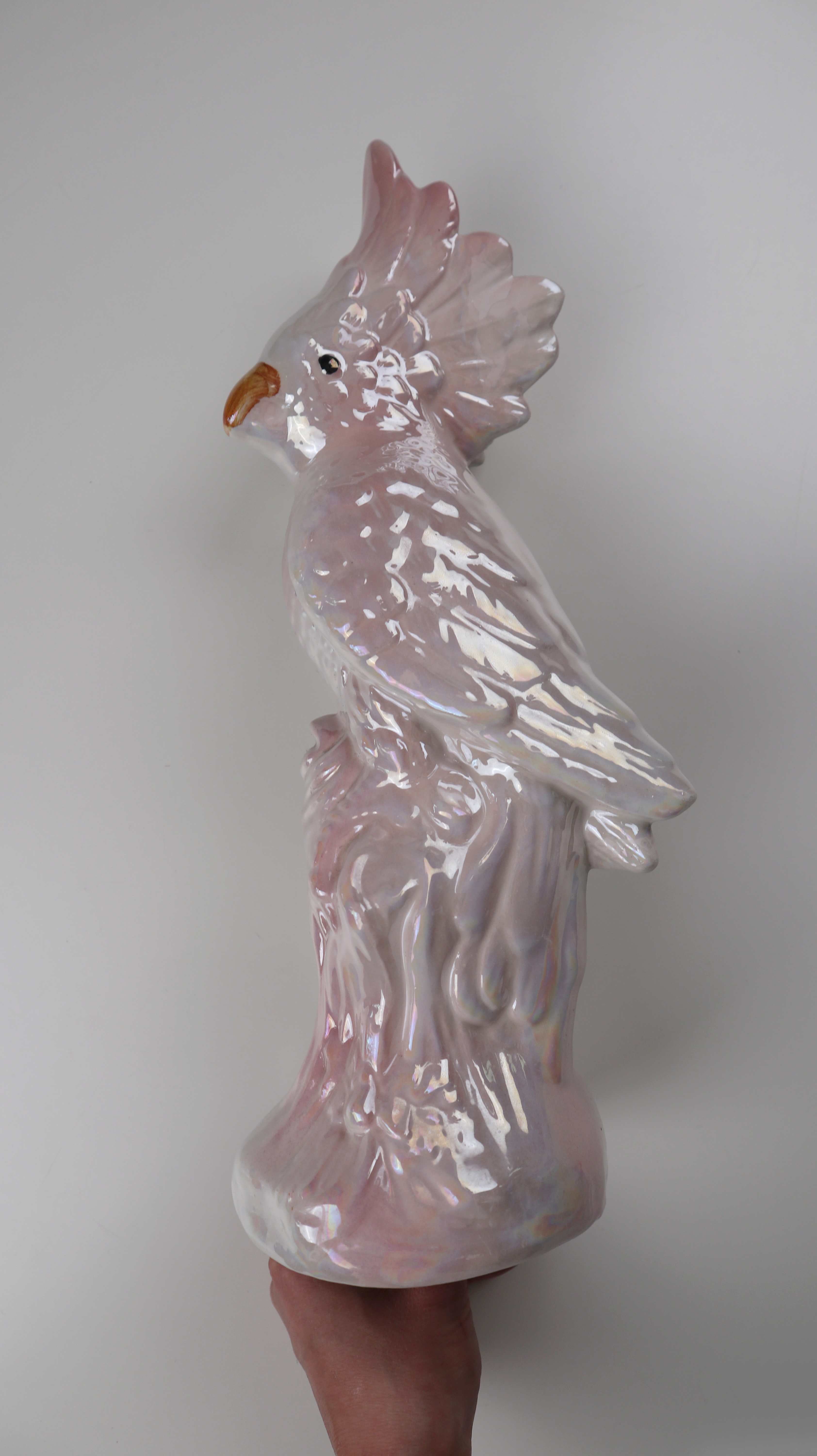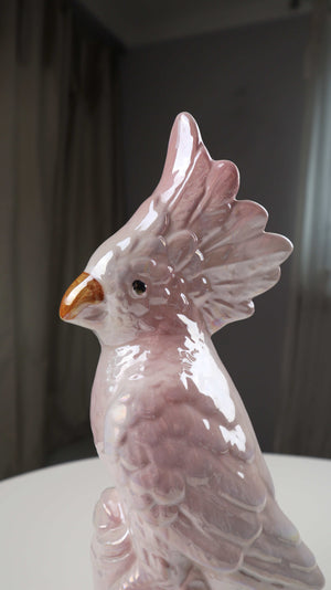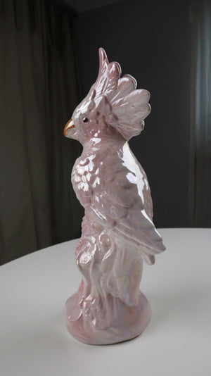 Made in Italy Kakadu Porzellan Figur Porzellanfigur Tier handbemalt Rosa Metallic Dekoobjekt