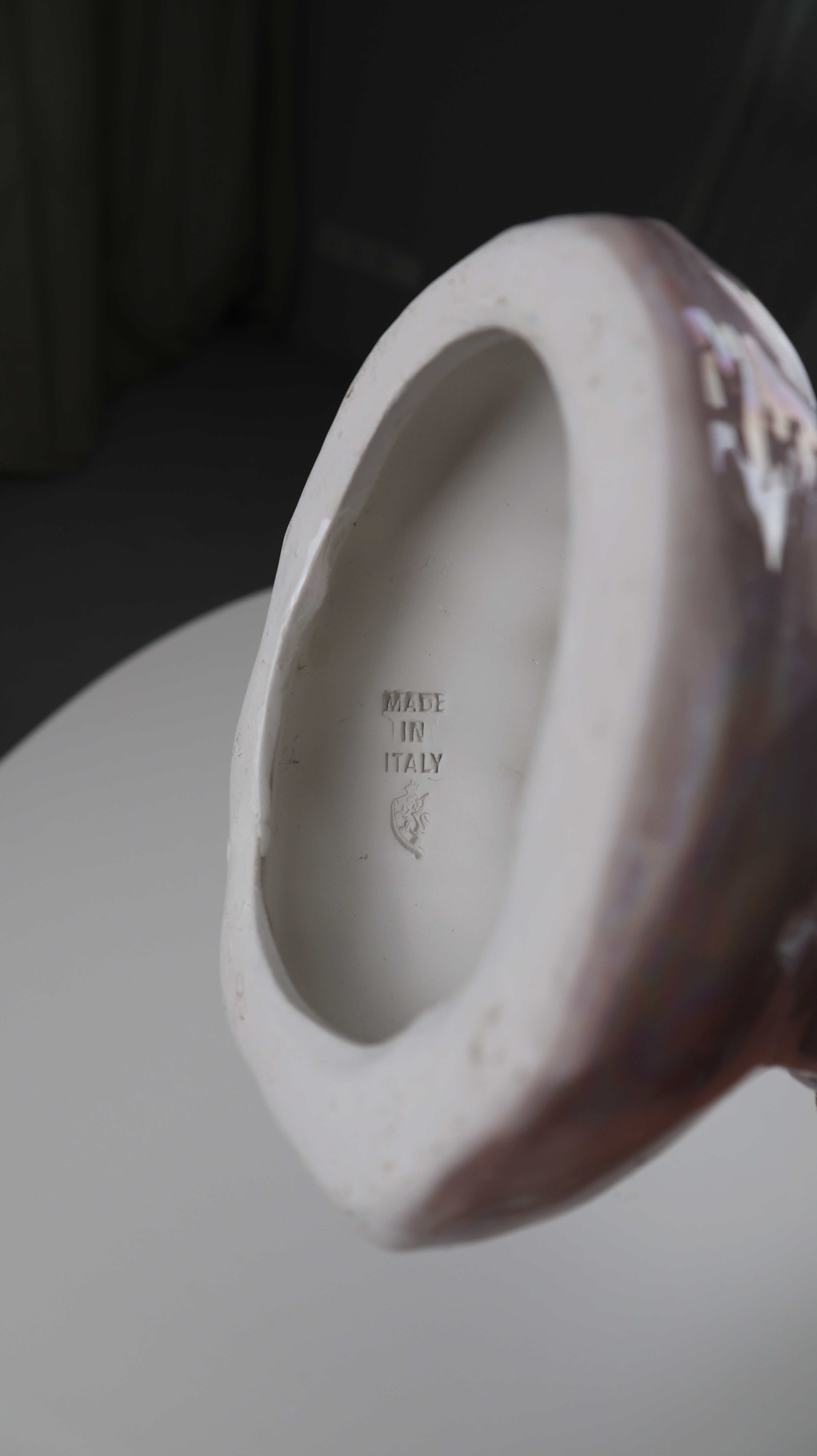 Antike Porzellanfigur, ein Kakadu mit metallischem Effekt. Er ist makellos und hat einen geprägten Stempel mit einem Löwen sowie dem Schriftzug Made in italy. Plus Versand